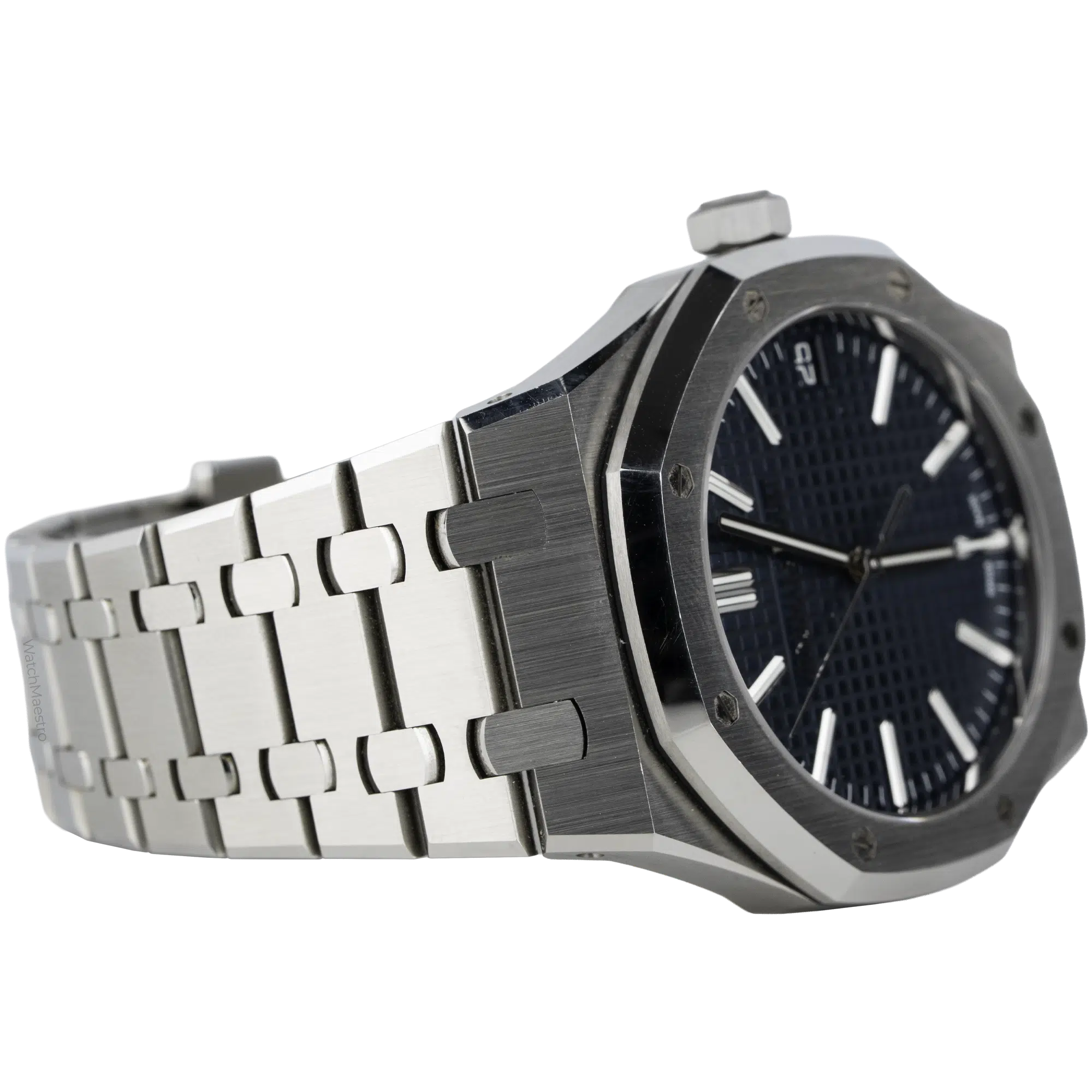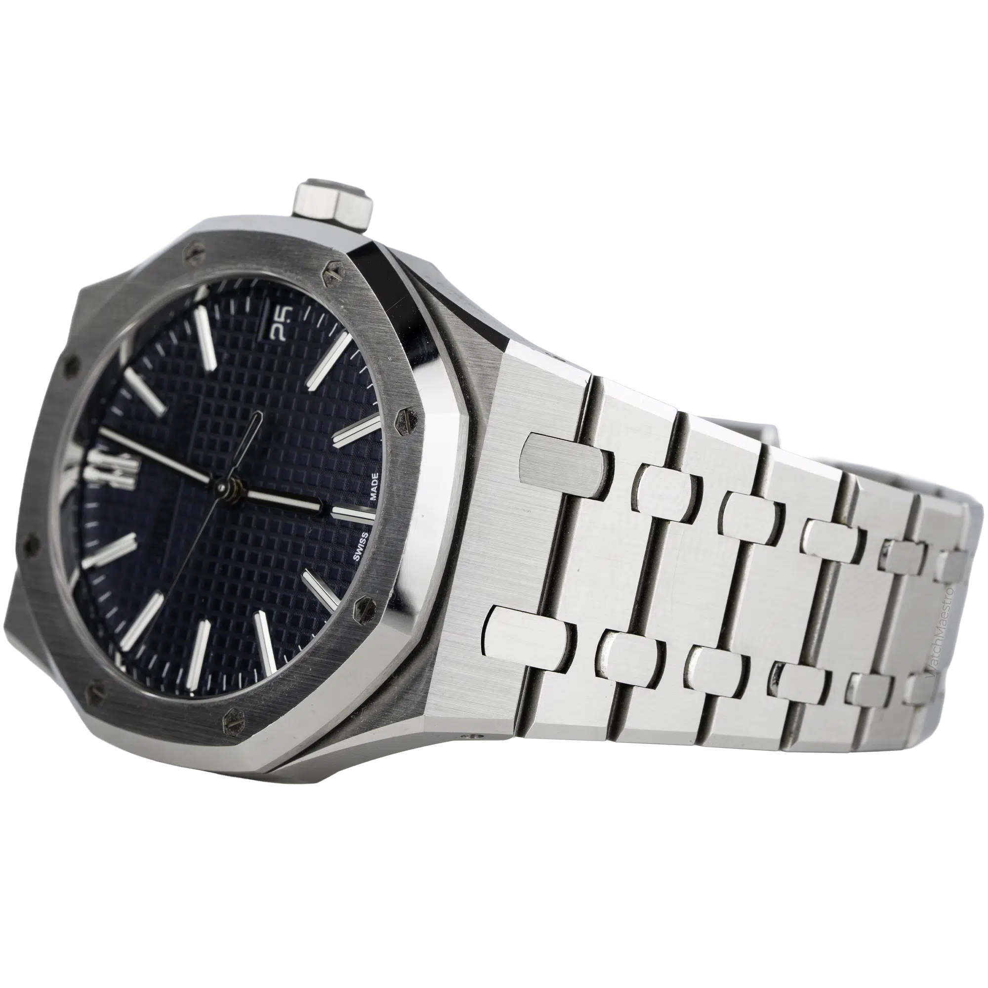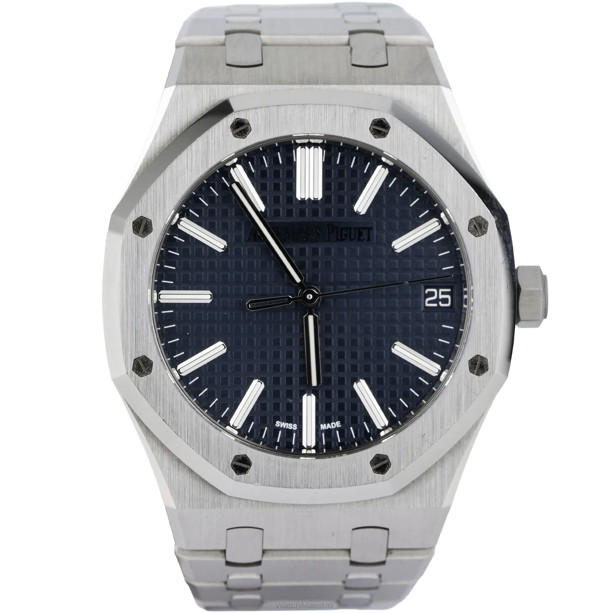 WatchMaestro presents the immensely popular Audemars Piguet Royal Oak featuring the 41mm Blue Dial. Purchased in 2023, the watch is pre-owned, which gives you the chance to own this timepiece at an incredible price. The watch features a robust Stainless Steel case, which sits on a Steel bracelet that just wears very comfortably on the wrist. This watch comes complete with box and papers, and it still has a 5-year AP warranty.