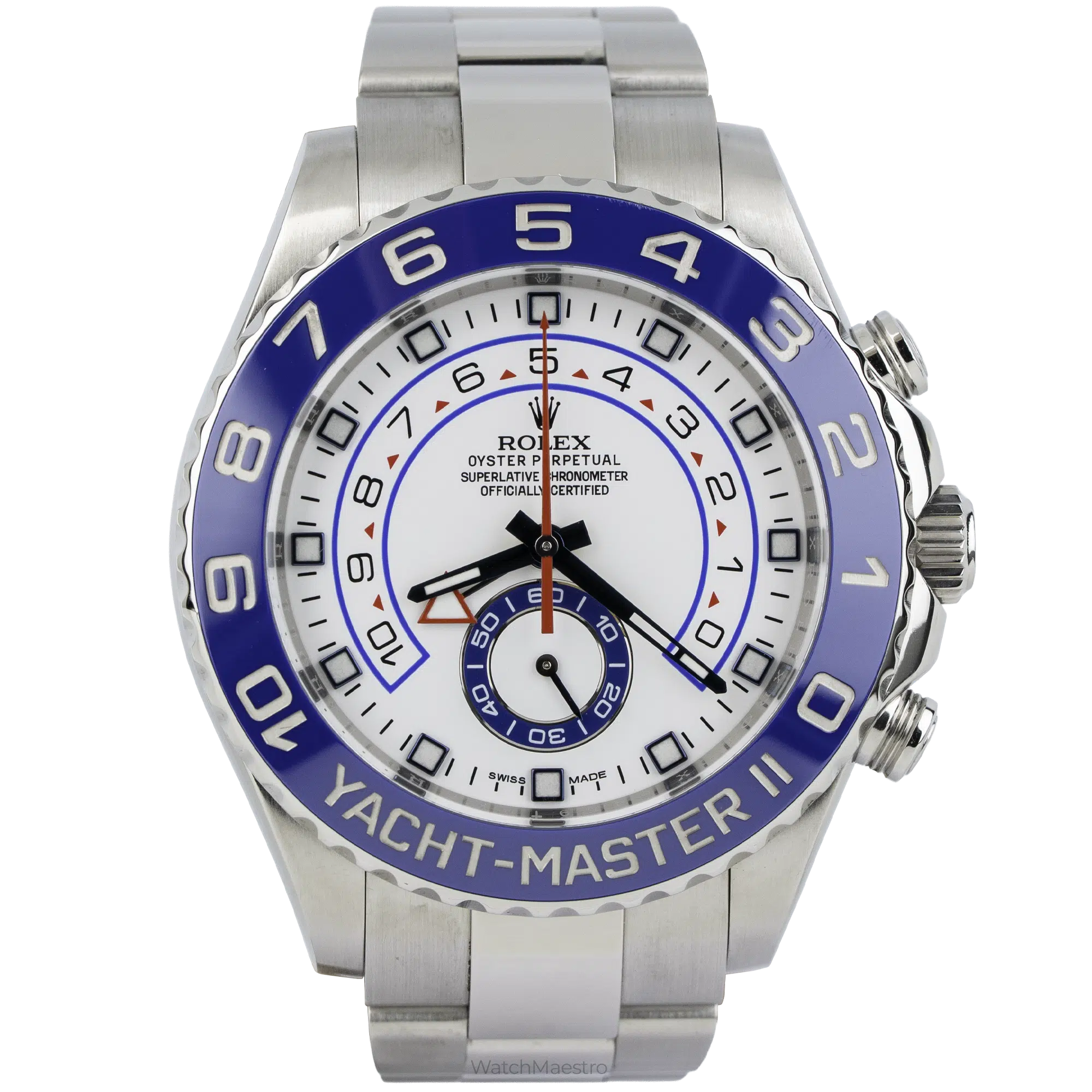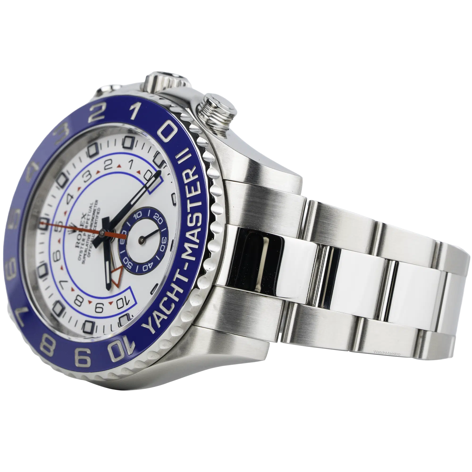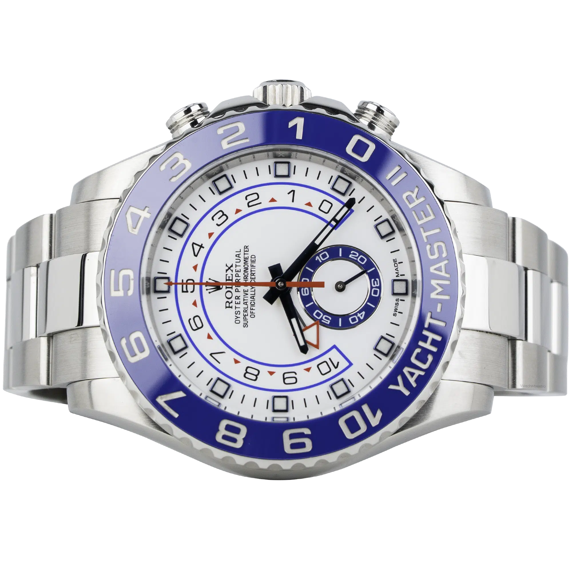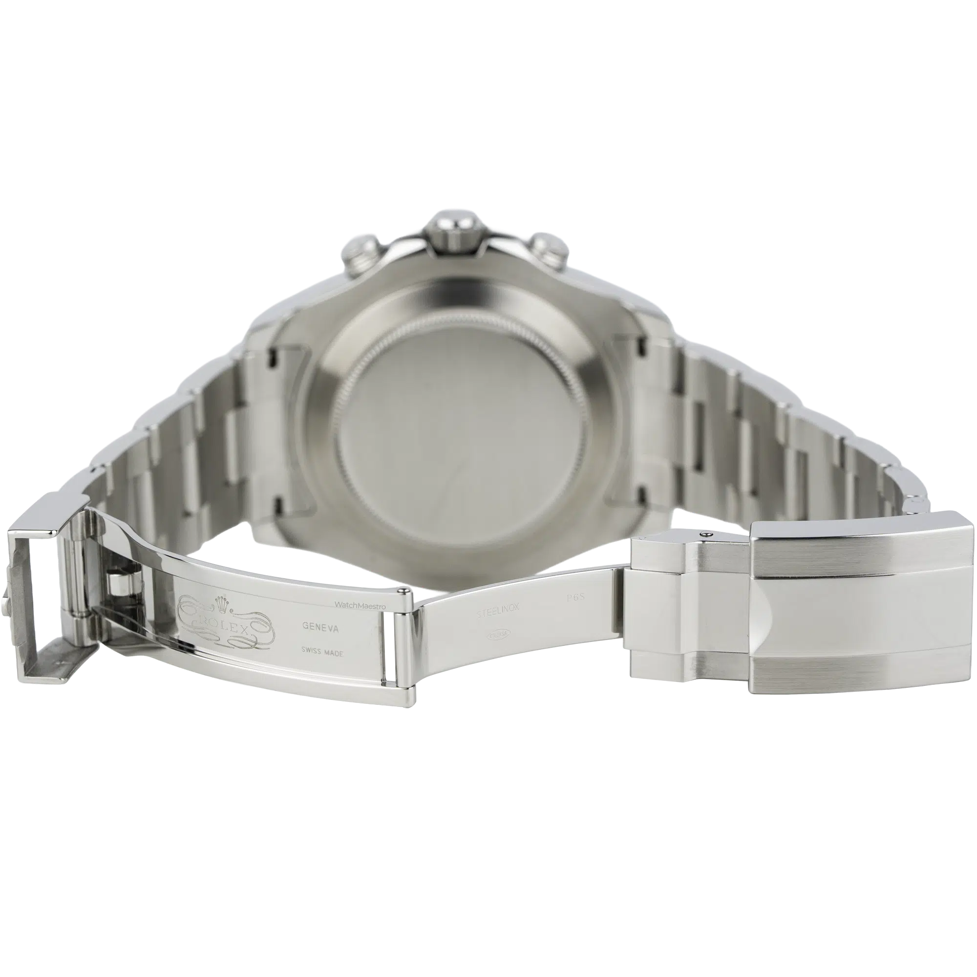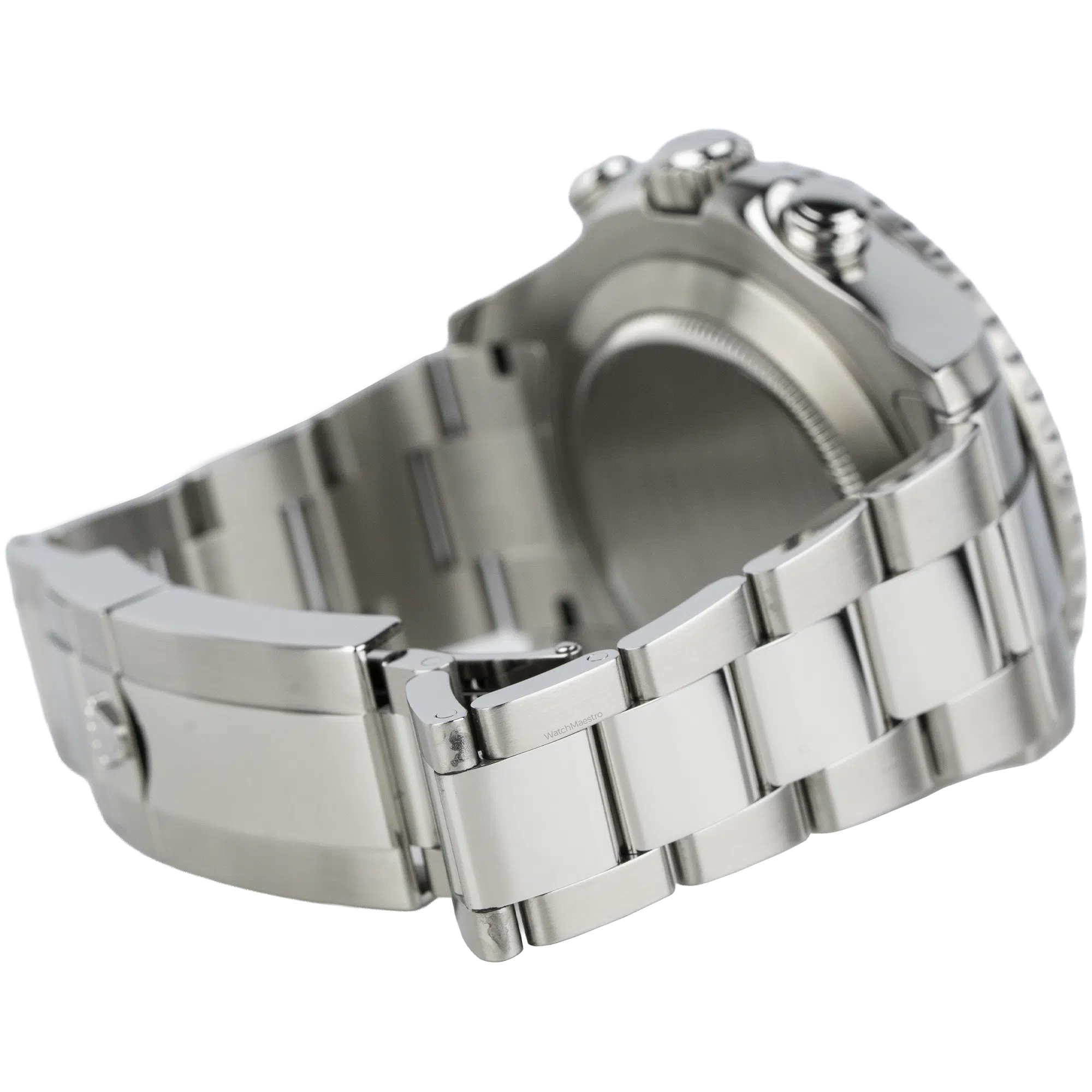 There’s nothing quiet about the Yacht-Master II and that’s the point. Built for regattas but worn just as often in boardrooms, this 44mm chronograph is Rolex at its most unapologetic. Built from Stainless Steel, this watch features a white dial and a blue Cerachrom bezel. Under the surface, reference 116680 packs Rolex’s unique programmable countdown timer with flyback reset, which is still one of the most technically interesting complications in the brand’s catalog. It’s pre-owned, but kept in great shape and comes with box and papers from 2016.