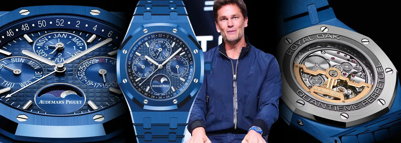 The watch Brady was wearing is the Audemars Piguet Royal Oak Perpetual Calendar, specifically the reference 26579CS.OO.1225CS.01. It is a famous model in the watch community because it is the first Royal Oak entirely with blue ceramic material.