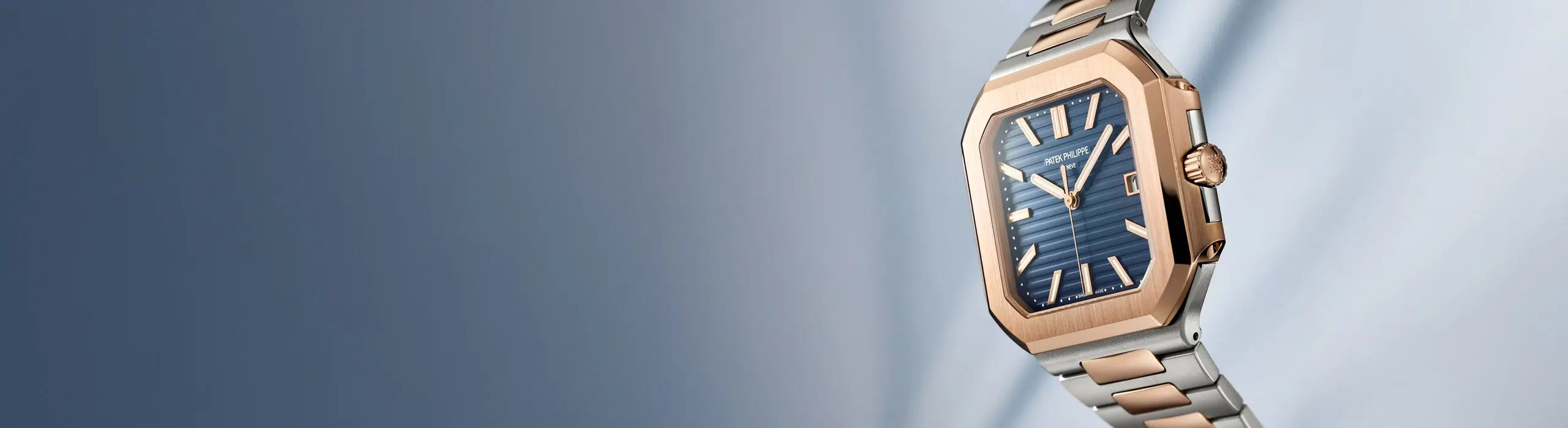 The Patek Philippe Cubitus is the first completely new collection from the Geneva manufacture in 25 years. The company released this model in late 2024. It is a luxury sports watch, which has a unique square case with rounded corners. President Thierry Stern designed it to look strong yet feel thin on the wrist. The demand is high for these watches, particularly the steel reference 5821 and the platinum reference 5822P. Browse our collection of unique Patek Philippe Cubitus watches.