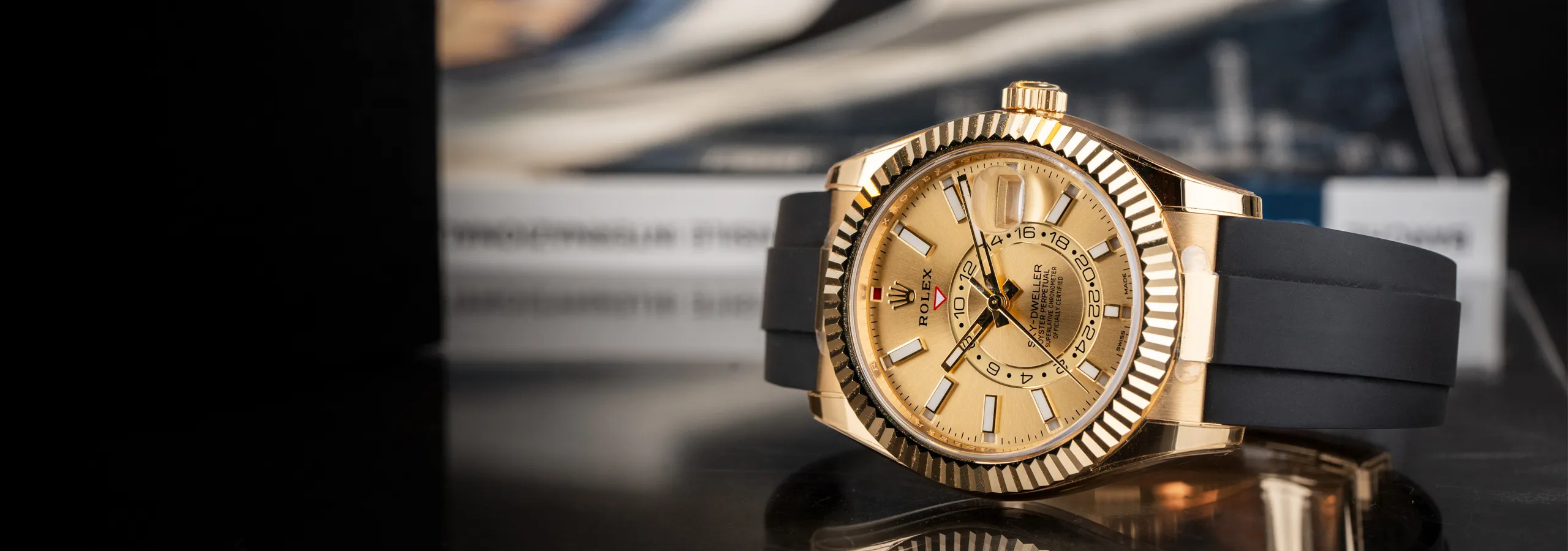 The blue dial effect is what makes the Rolex Sky-Dweller a good investment. For example, the blue dial reference 326934 has increased in value in recent years. It was trading for almost double its retail price at its peak in 2022. Although prices came down in 2023 and 2024, the market is stable now. Solid gold watches are heavy assets and do not jump in value like steel. However, gold models maintain their value because this material itself is expensive.