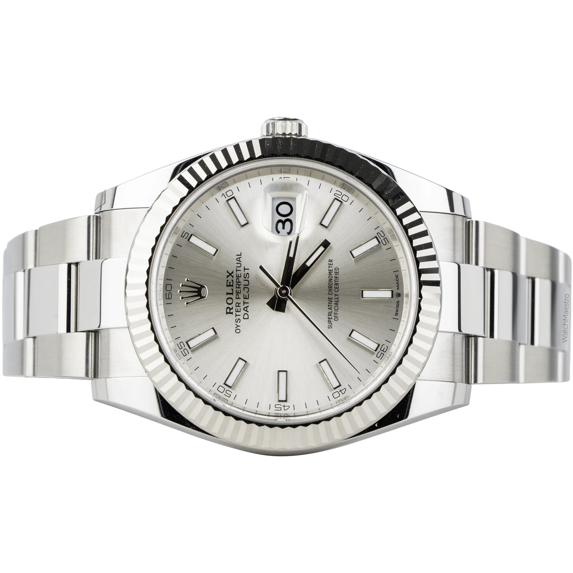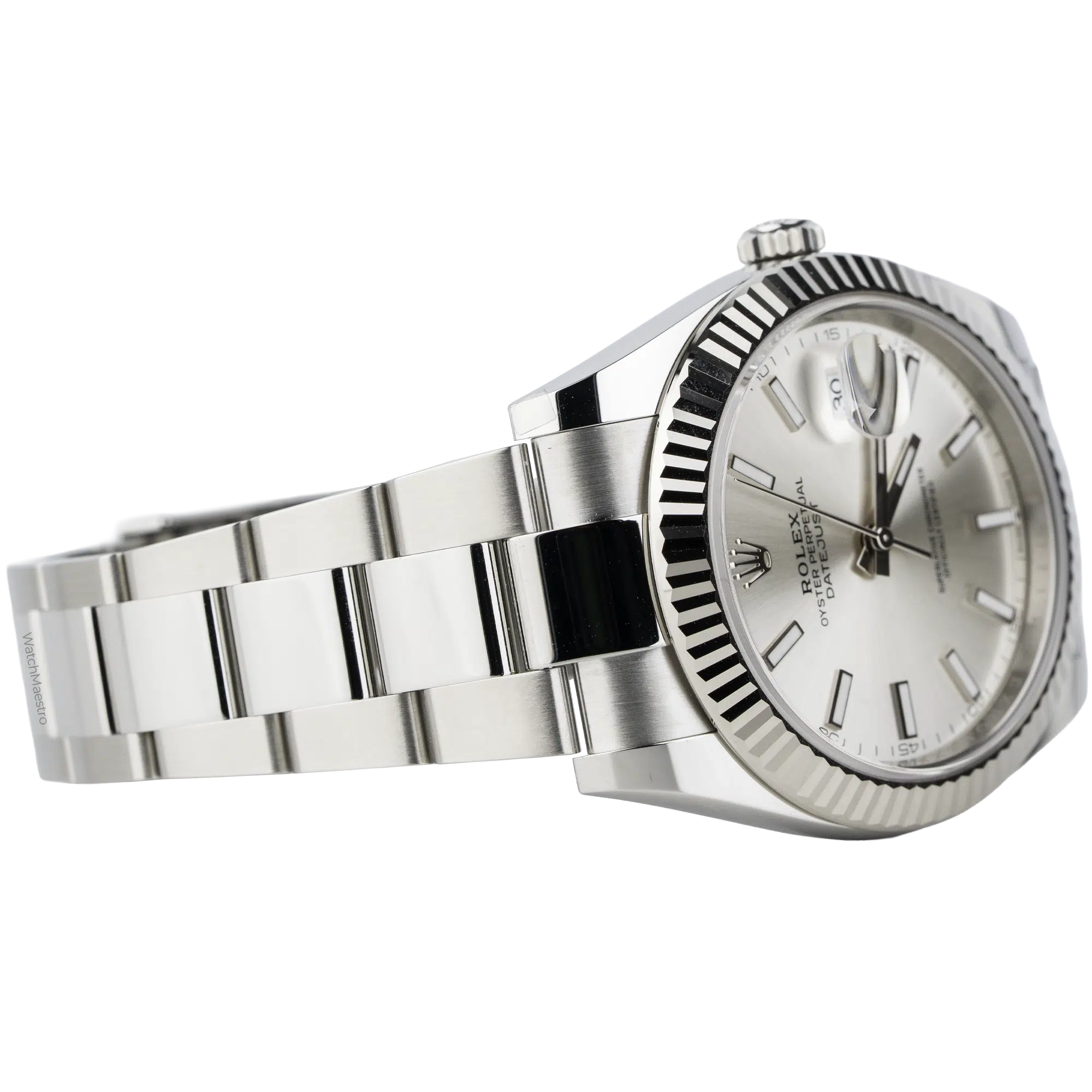 Get yourself into the world of classic and timeless watches with the Rolex Datejust 41 reference 126334. The classic Silver Dial and the Fluted Bezel together give it a rich look. The 41mm timepiece sits on an Oyster bracelet, which not only sits comfortably on the wrist but also gives it a rather sporty approach. In such a configuration, this Datejust 41 can be worn on a daily basis or even at business meetings. Originally bought in 2025, the watch is still in brand-new condition and it comes complete with its box and papers.
