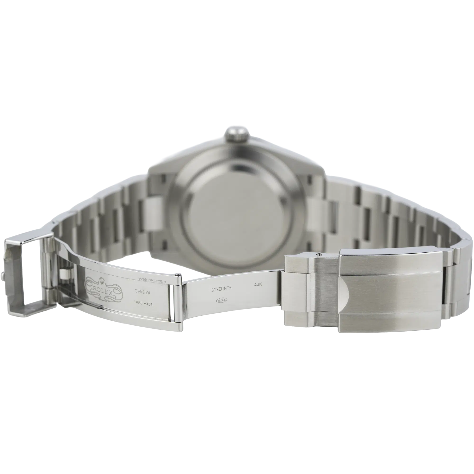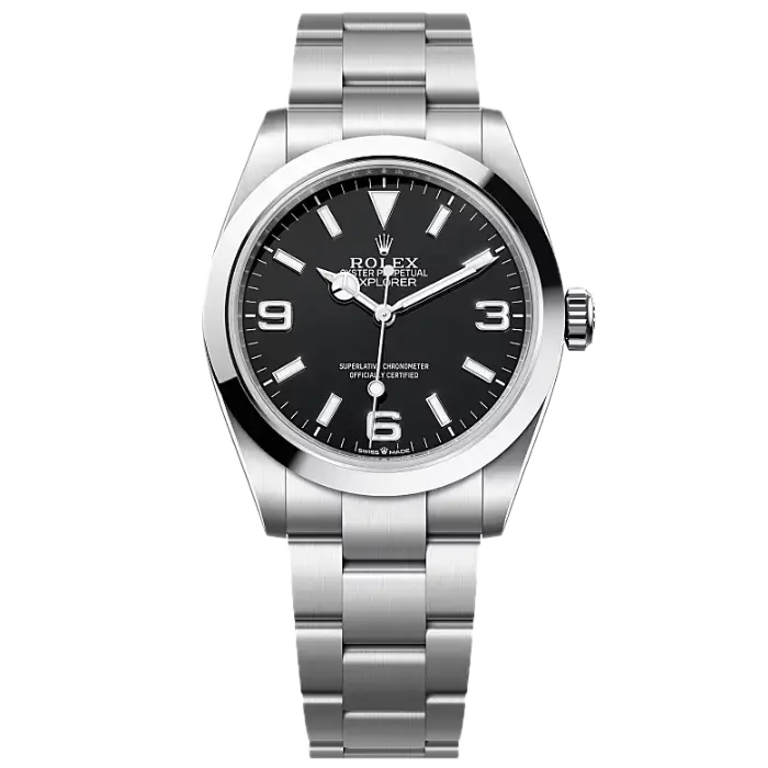 The watch feels balanced and comfortable on the wrist. It has an Oyster bracelet, which has a smooth finish, making it comfortable to wear all day. In addition, when you close the Oysterlock clasp, it makes a reassuring click. The flat, polished bezel adds a touch of shine and makes the Rolex Explorer watch smart with a suit or casual with a t-shirt. The timepiece runs on a reliable automatic movement. Thus, this is a luxury watch you can wear everywhere without worry.