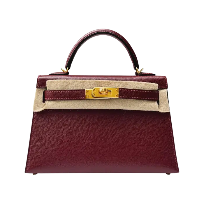 While Kelly Mini is solid and strong, it is very lightweight and securely holds basic items like cash, cards, and keys. The deep burgundy color works as a simple dark neutral. You can hold the single top handle or attach the thin strap to your shoulder. The bag looks very good next to a beige trench coat for evening tea. Wear it with a simple black silk dress for the afternoons or mornings. The Hermes Kelly Mini is great for formal weddings, luxury fine dining, and art gallery events.