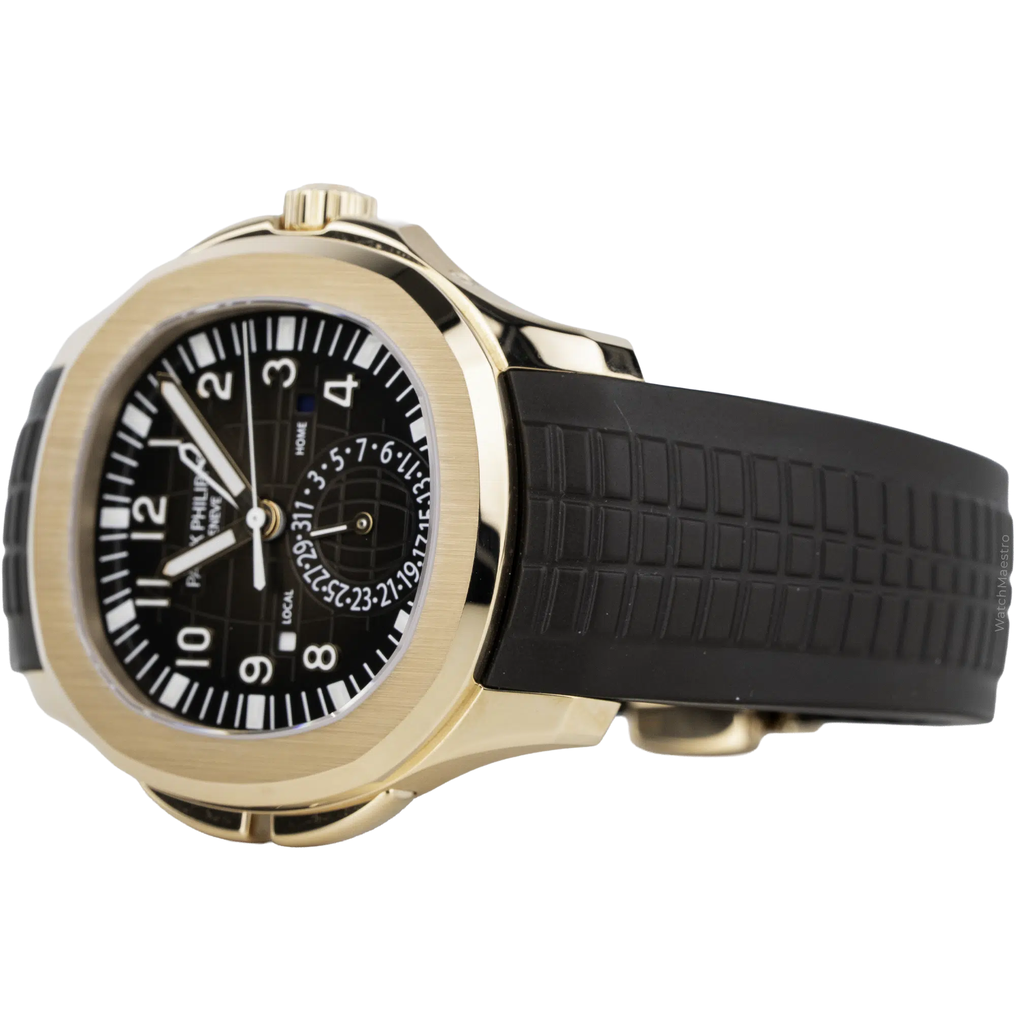 Are you a fan of luxury and adventure? The Patek Philippe Aquanaut 5164R might just be the perfect addition to your collection. This stunning timepiece features a 40.8mm Rose gold case that beautifully complements its brown dial and matching brown rubber strap. Originally purchased in 2021, this pre-owned Aquanaut is in great condition and it comes complete with its original box and papers. With the GMT function and a sub-dial that shows the date, this is a very practical watch for frequent travelers.