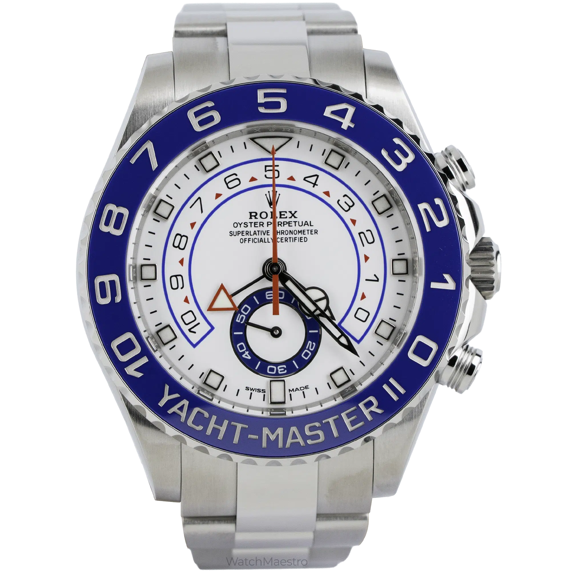 There’s nothing quiet about the Yacht-Master II and that’s the point. Built for regattas but worn just as often in boardrooms, this 44mm chronograph is Rolex at its most unapologetic. Built from Stainless Steel, this watch features a white dial and a blue Cerachrom bezel. Under the surface, reference 116680 packs Rolex’s unique programmable countdown timer with flyback reset, which is still one of the most technically interesting complications in the brand’s catalog. It’s still brand-new and comes with box and papers from 2022.