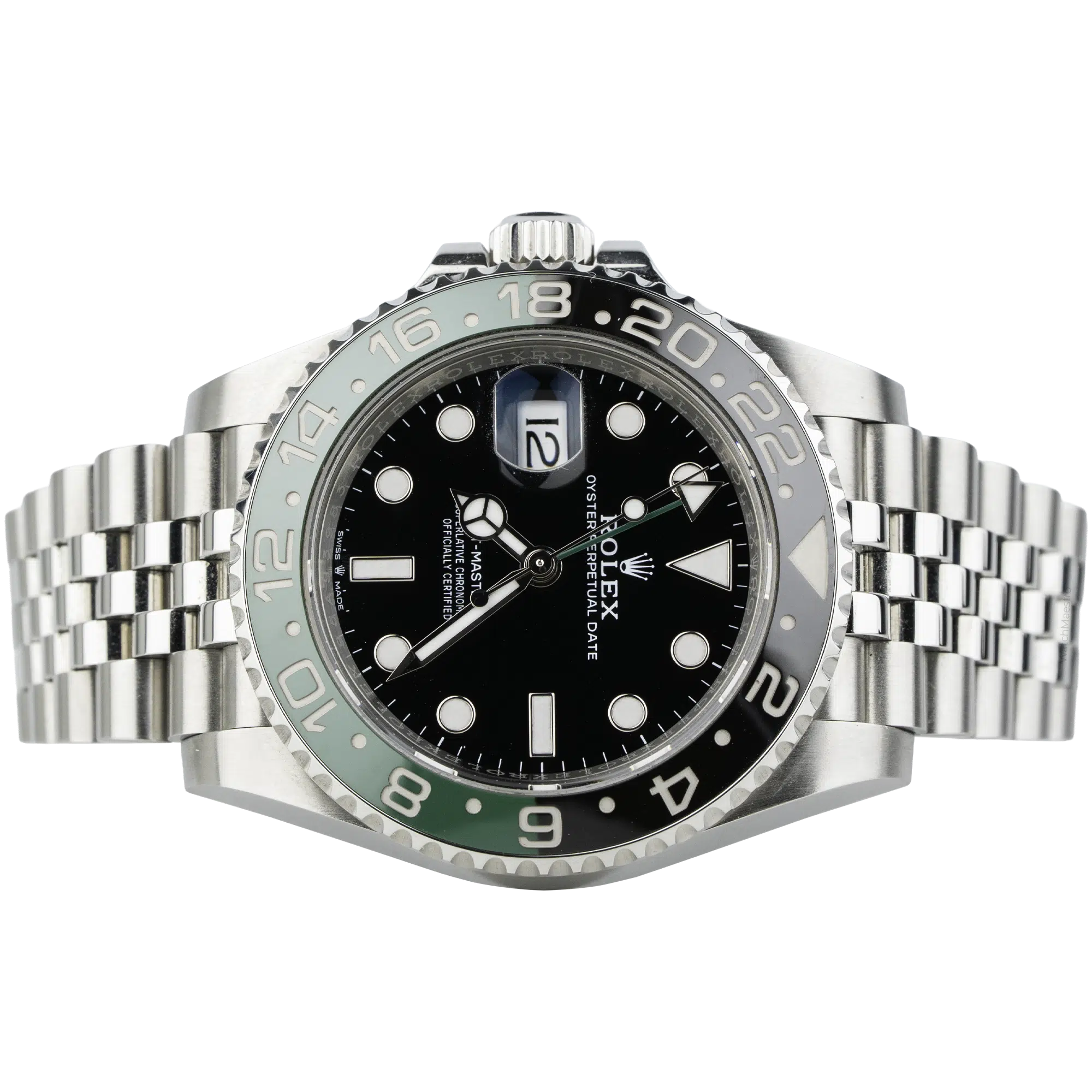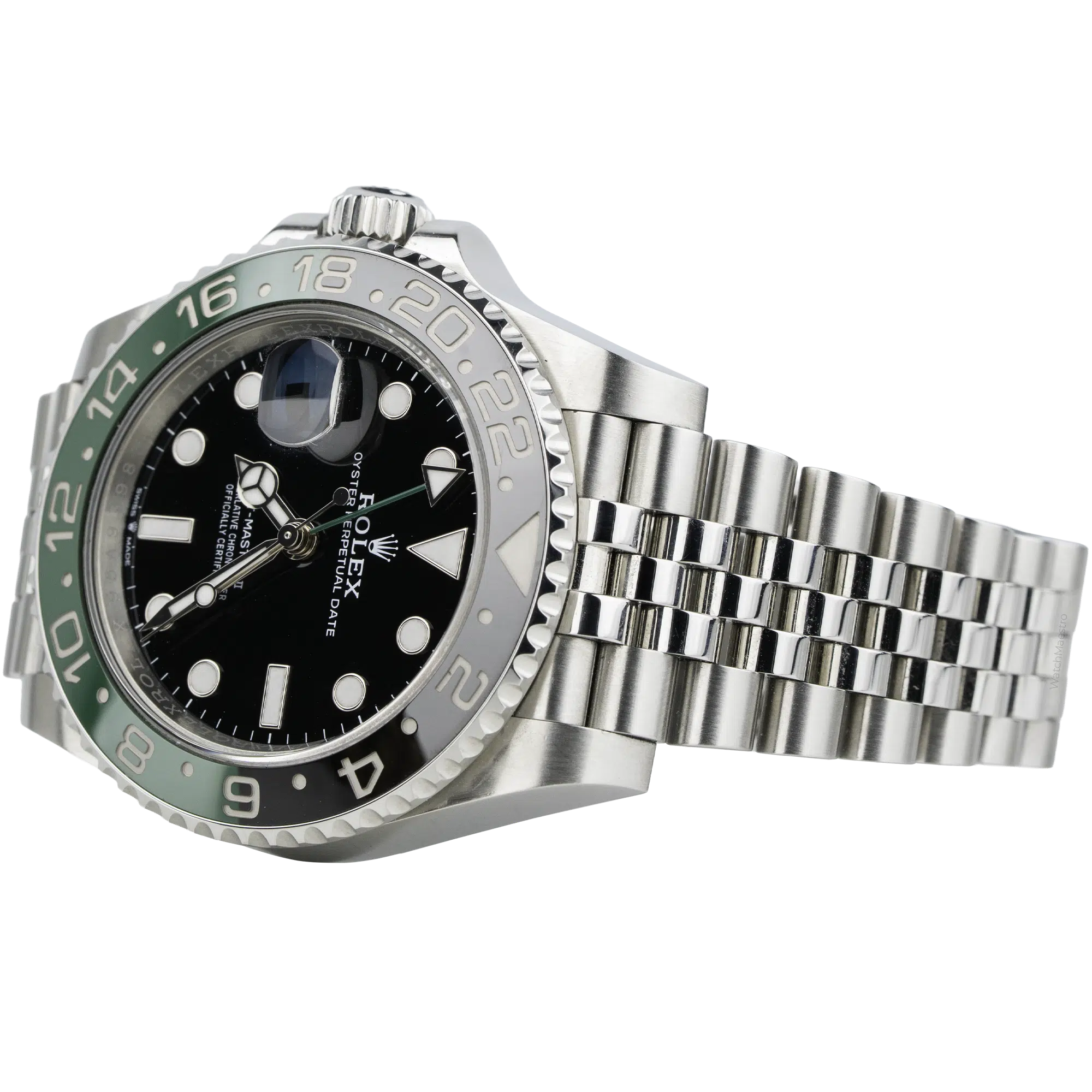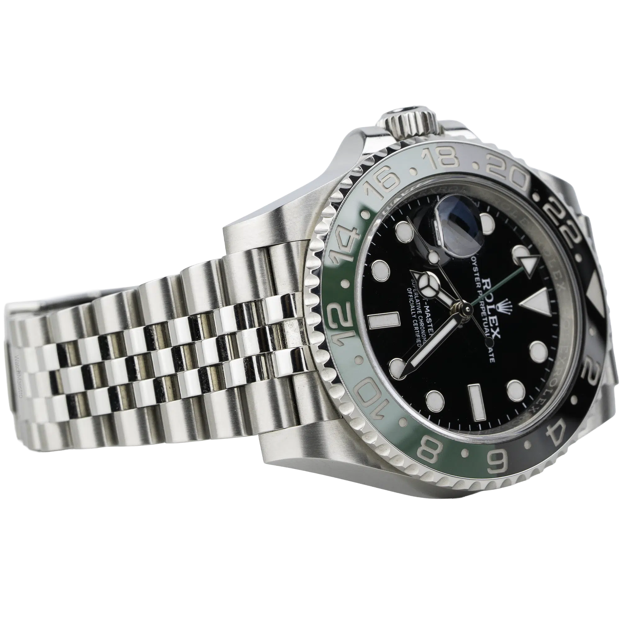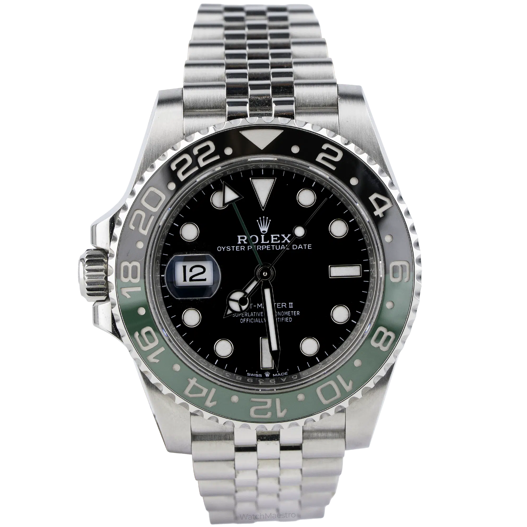 This is a pre-owned Rolex GMT-Master II Sprite featuring the green and black bi-colored bezel. Purchased in 2024, the watch comes complete with box and papers and it is still in relatively good condition. The reference 126720VTNR was added to the GMT Master collection a couple of years ago and it seems to have been doing really well. Initially, this one was designed for left-handed people but the watch has even appealed to some right-handed people. It features a stunning green and black bezel and has a 40mm Black dial.