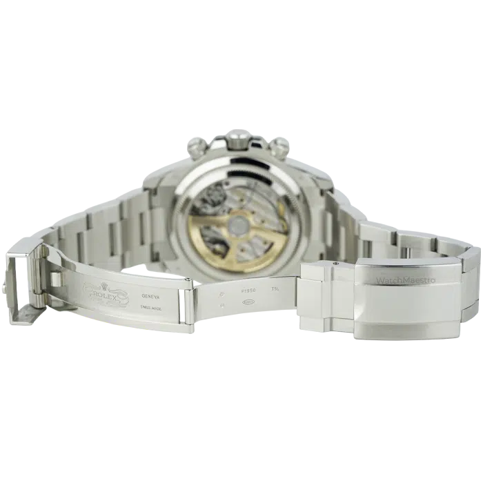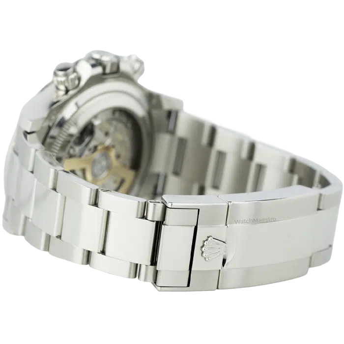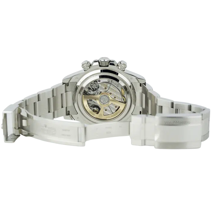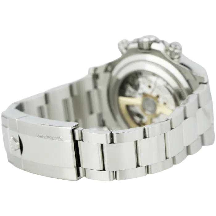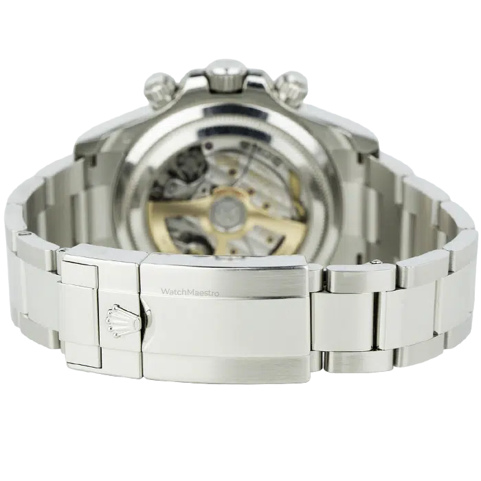 The durable ceramic ensures the watch does not get scratches, and at the same time, it adds sharp visual contrast. Turn the watch over to see a rare open exhibition case back. There is a sapphire window that reveals the precise automatic movement. The watch is available in like-new condition, and for full authenticity, you also get the original box and papers from us. You can pair this Rolex Daytona watch with your business outfit or casual dresses while exploring Dubai on weekends.