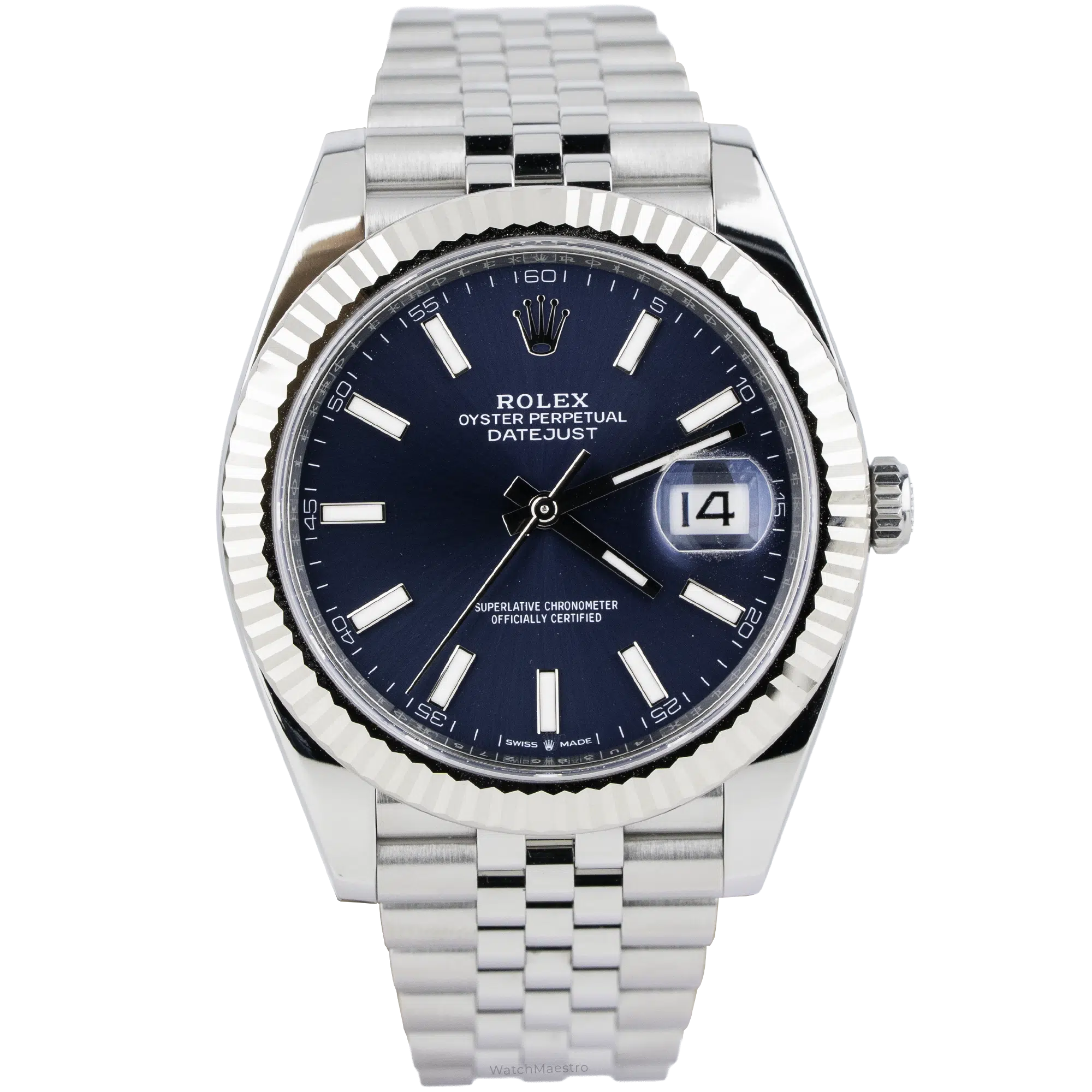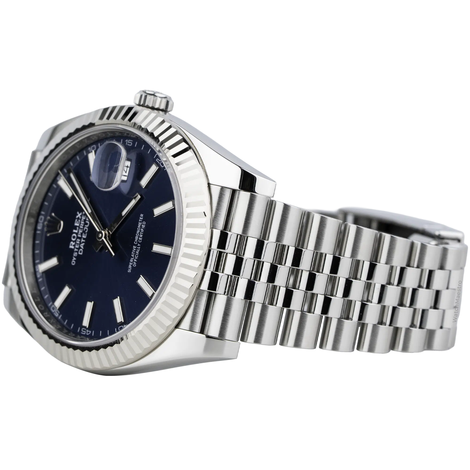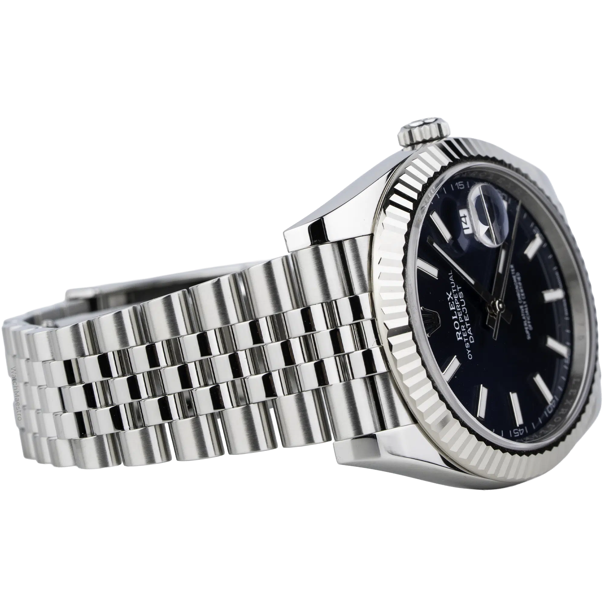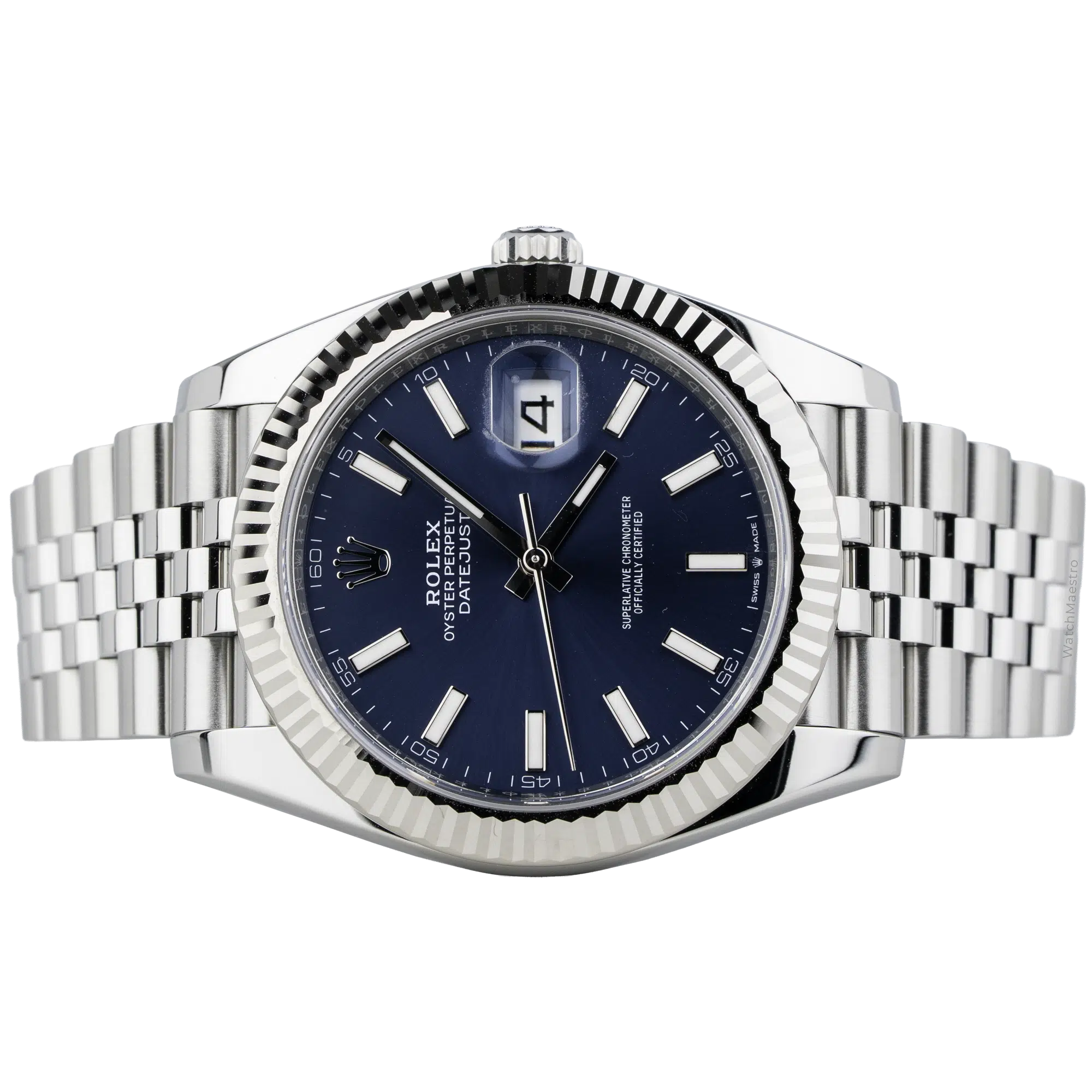 Embrace the ever-so-popular Rolex Datejust 41 in a stunning Blue Dial. The iconic fluted bezel, crafted from 18k white gold, adds a touch of undeniable luxury and sets this timepiece apart from the ordinary. The comfortable Jubilee Bracelet completes the look with its five-link construction. This 2024 pre-owned timepiece comes complete with its original box and papers. Whether you’re a seasoned watch enthusiast or simply appreciate quality craftsmanship, the Datejust 41 is sure to become a cherished companion for a lifetime.