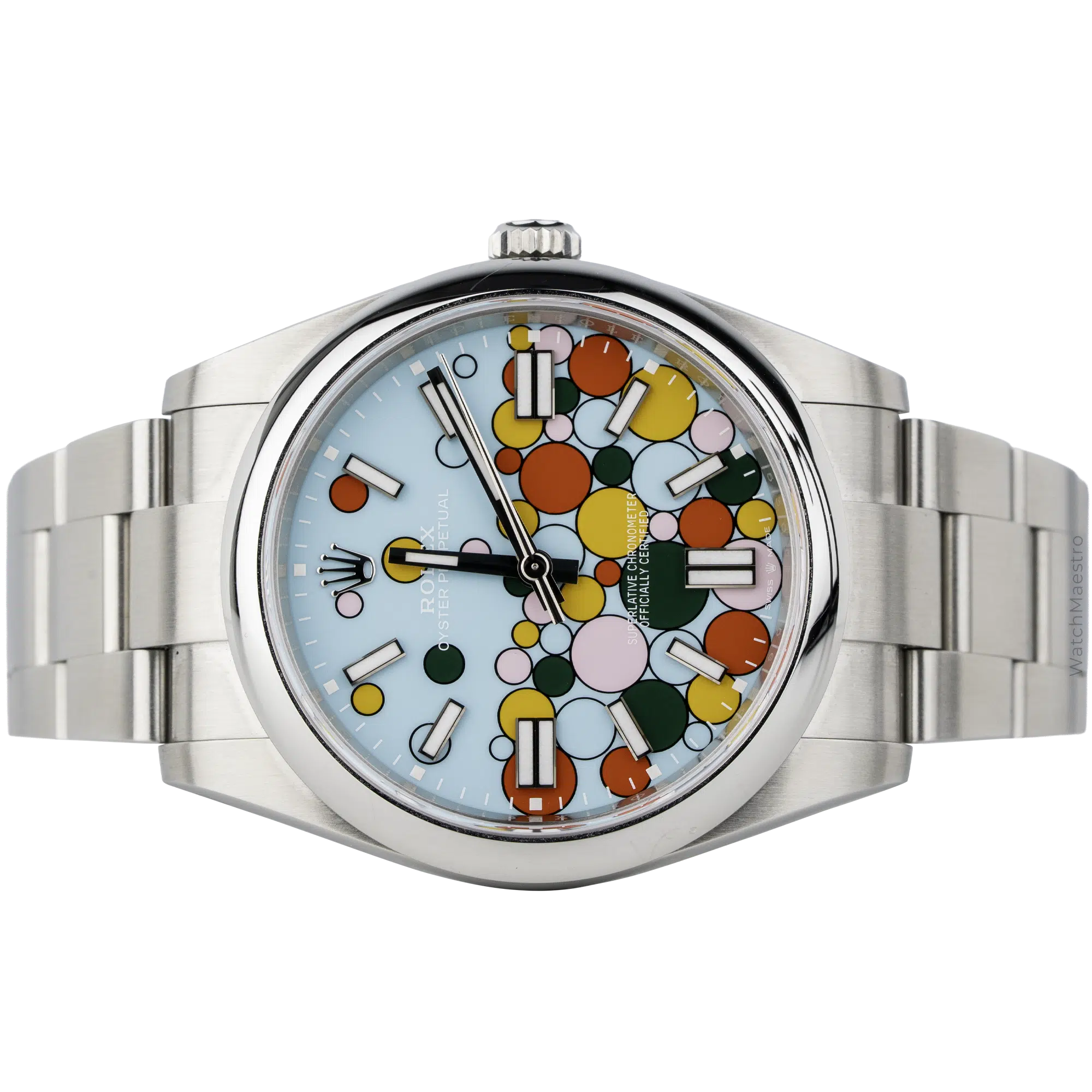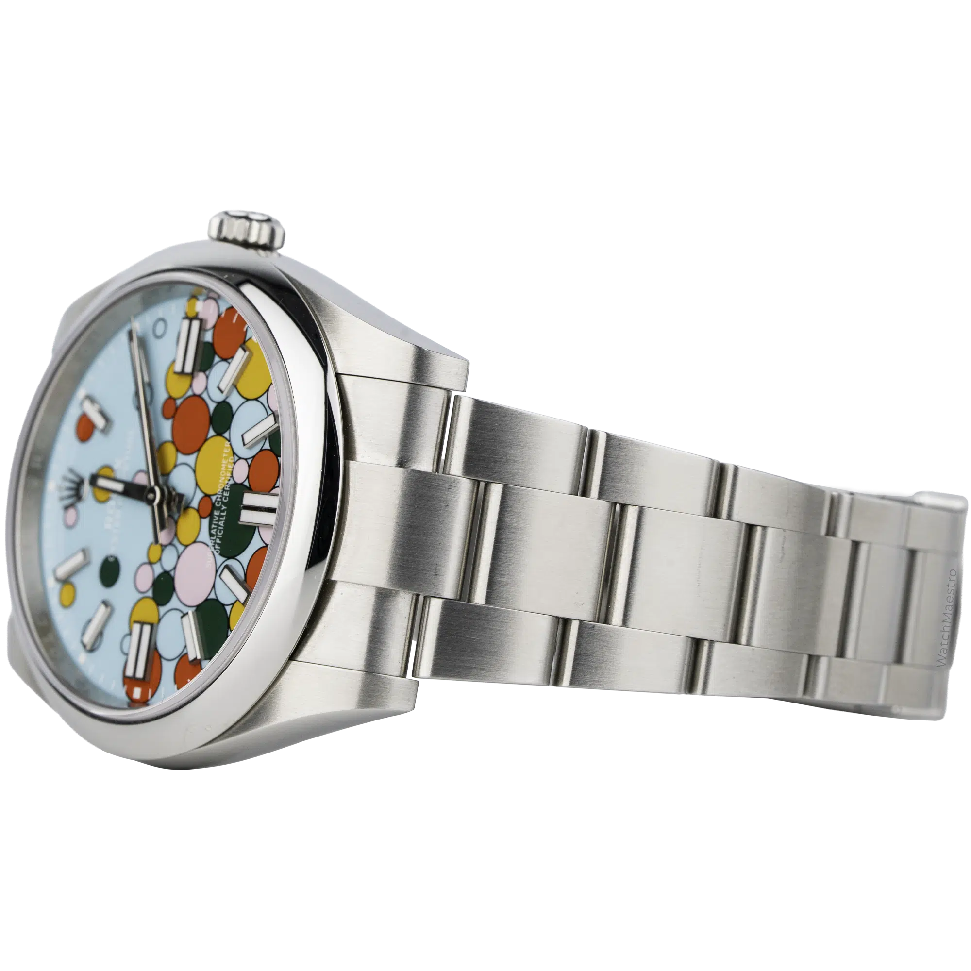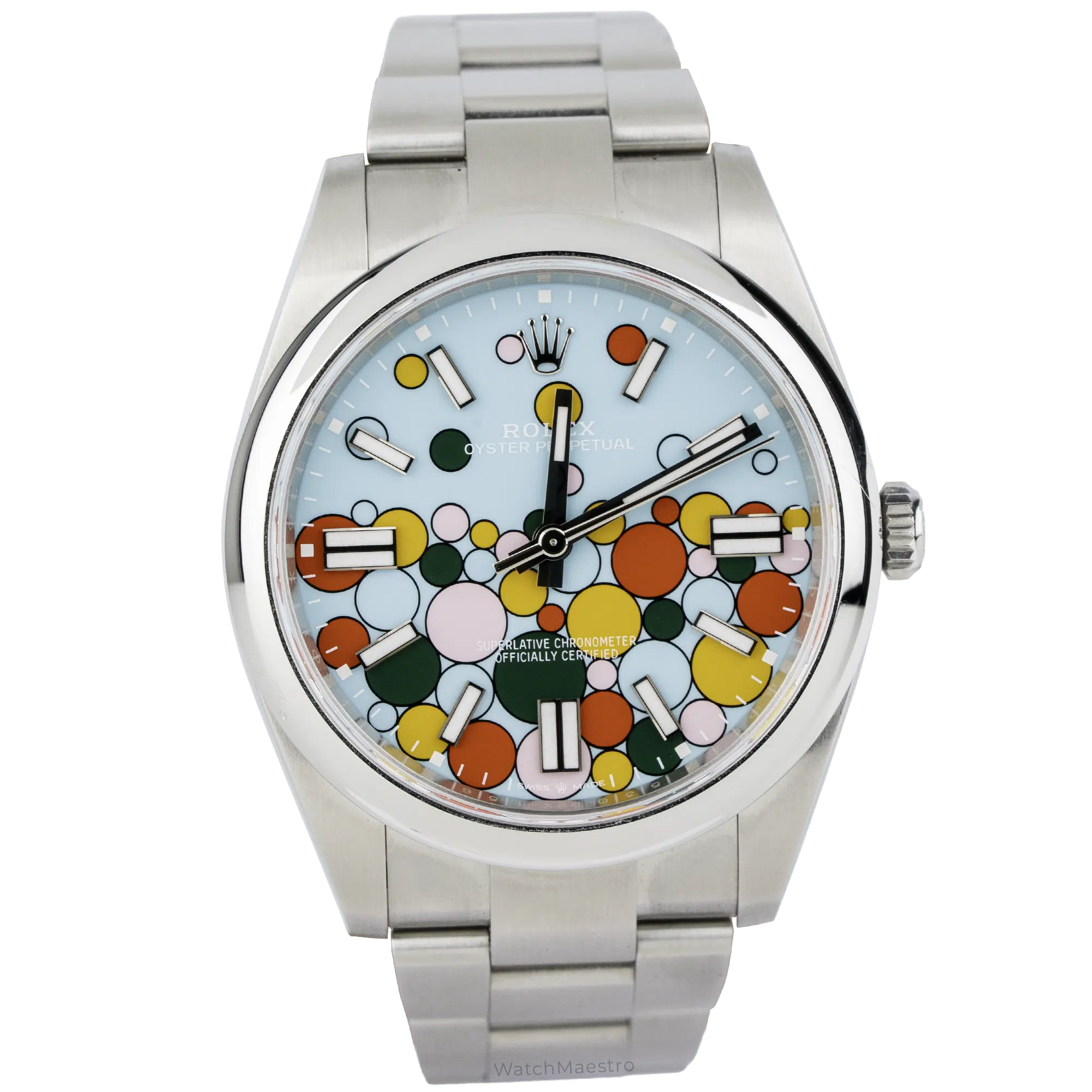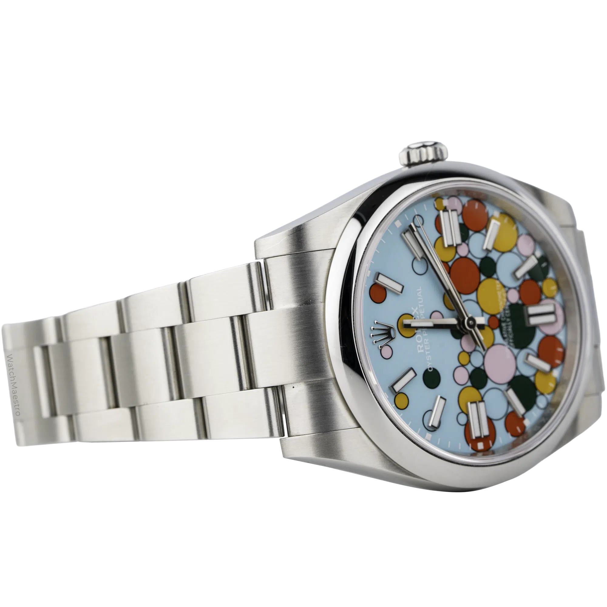 Introducing the Rolex Oyster Perpetual 41 with the special Turquoise Blue Celebration Dial. This dial was discontinued earlier this year, making this watch even more desirable. This one in particular was originally purchased in 2024 and even though pre-owned it flaunts a great condition. It comes complete with box and papers. If you have been looking for a watch that is simple yet manages to stand out, this is the perfect timepiece for you. Visit the WatchMaestro Showroom to check out the watch in person today!