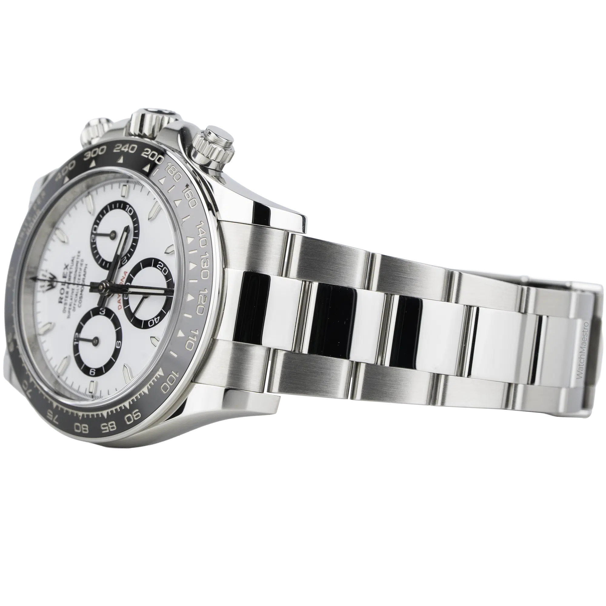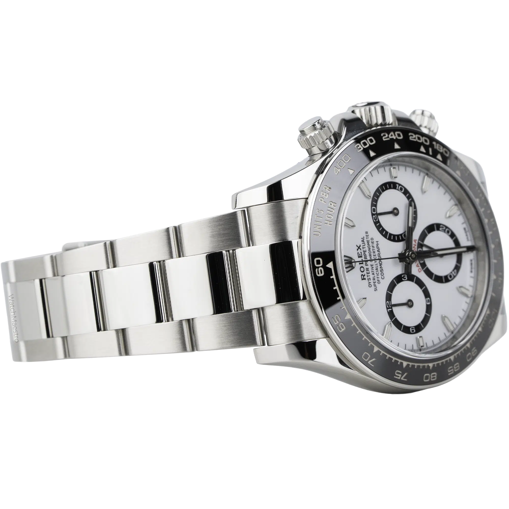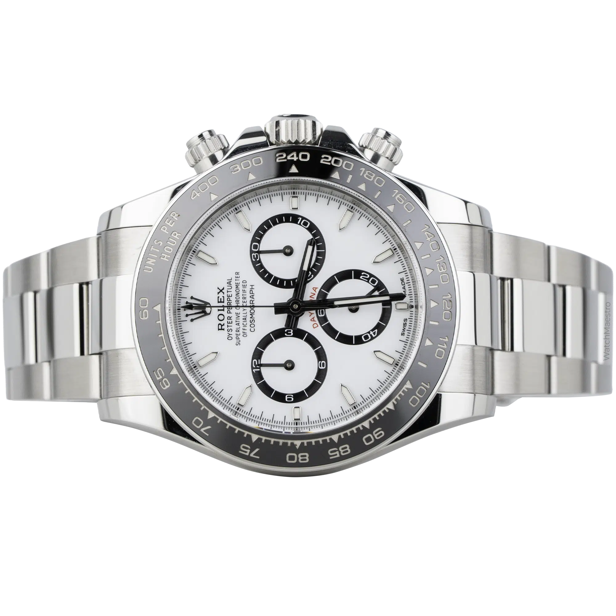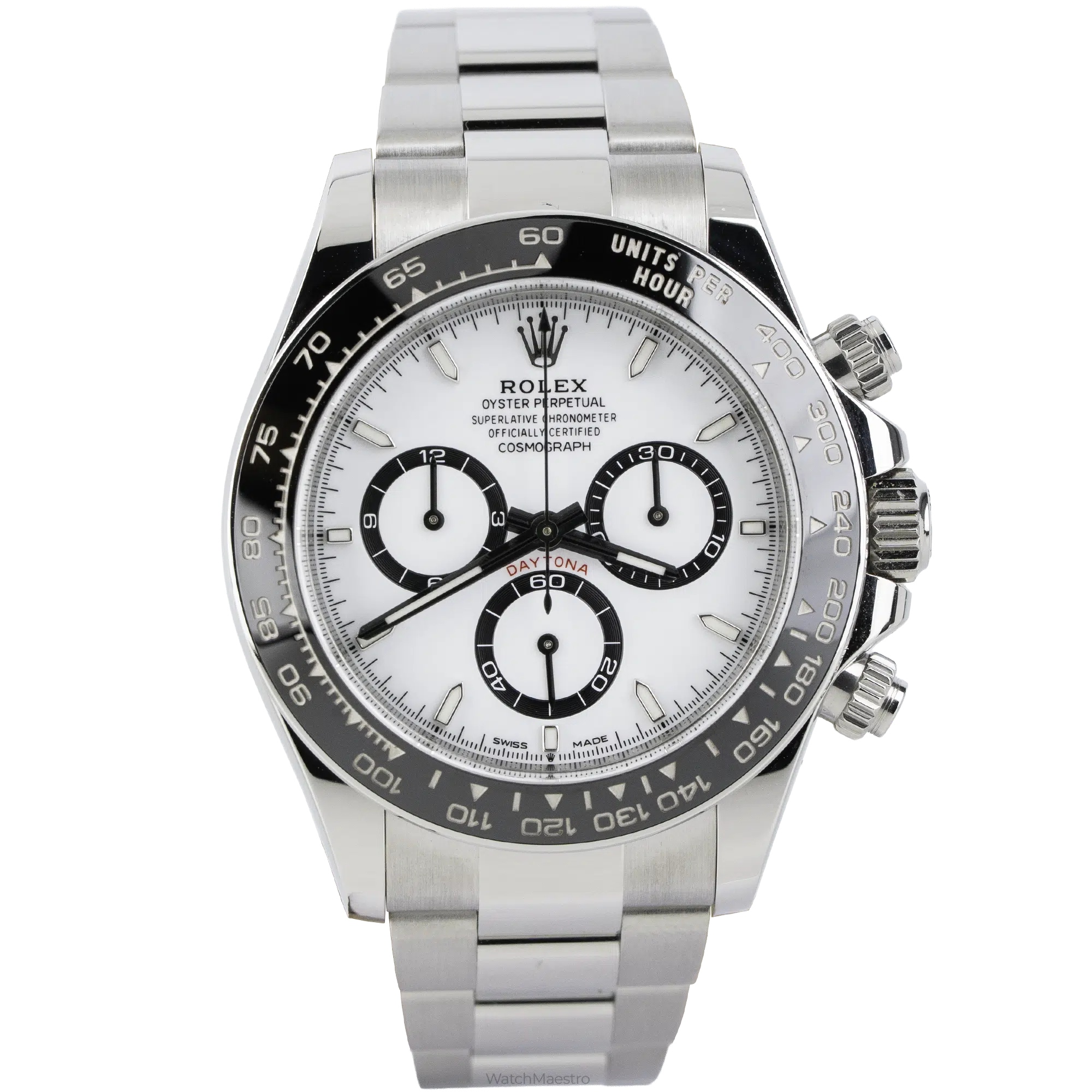 Fresh 2026 Rolex Daytona Panda is up for grabs here at WatchMaestro. This one in particular comes complete with box and papers and it is still in a brand-new condition. Sheltered under the 5-year Rolex warranty, this timepiece features a White Dial with Black outlining on the sub-dials resembling the facial markings of a panda, hence the nickname. This classic configuration not only enhances readability but also adds a timeless and sporty aesthetic to the Rolex Daytona. This is a Rolex watch that you can enjoy wearing every day both with casual outfits as well as business attire.