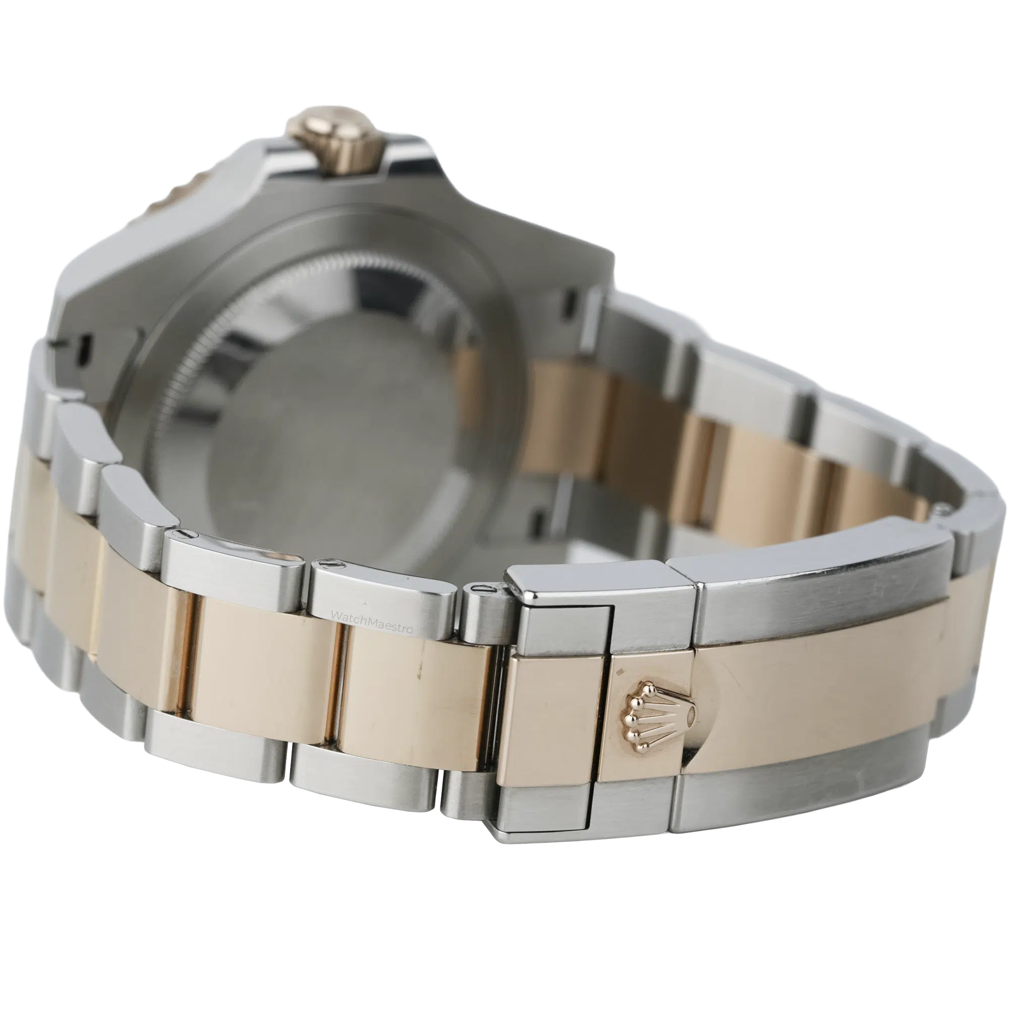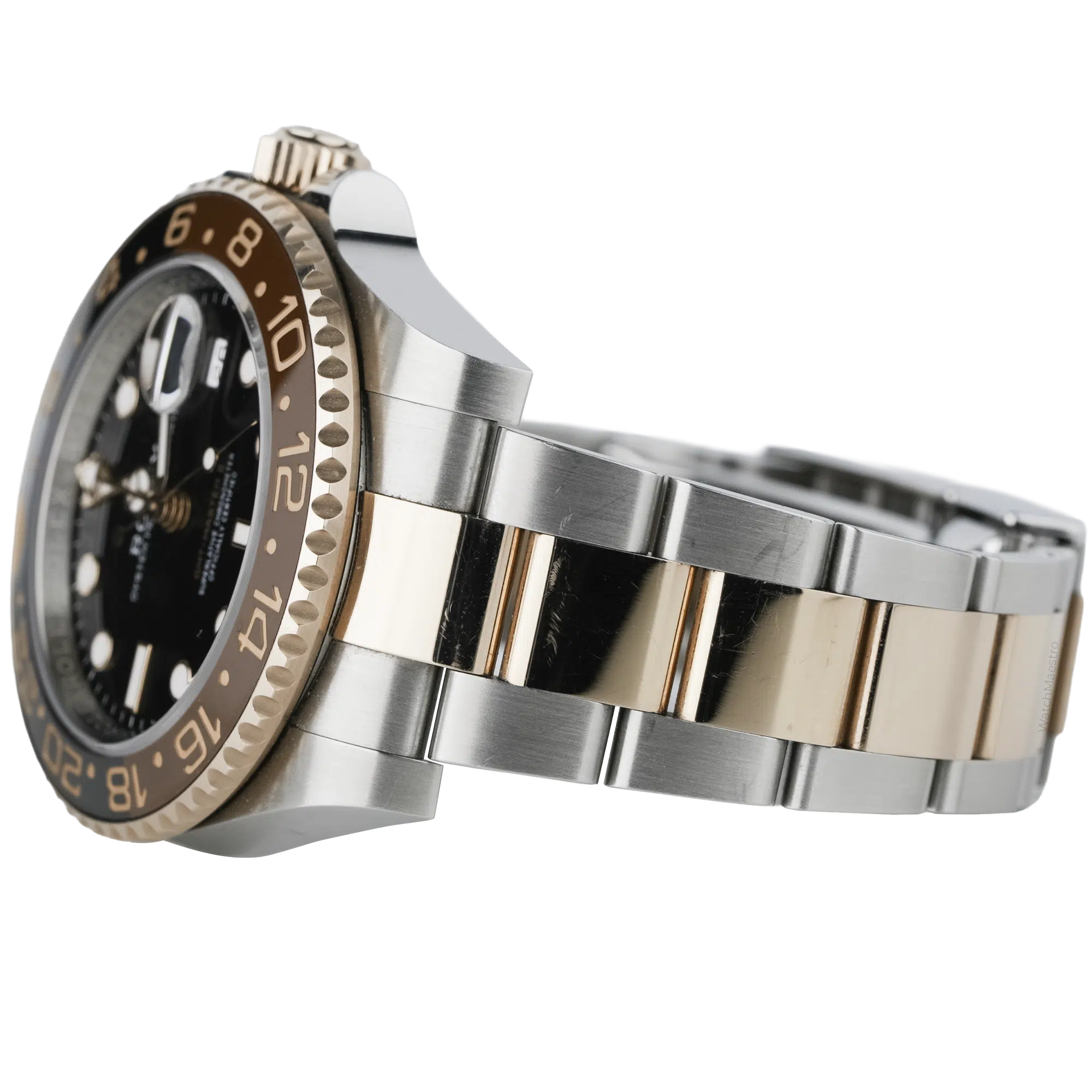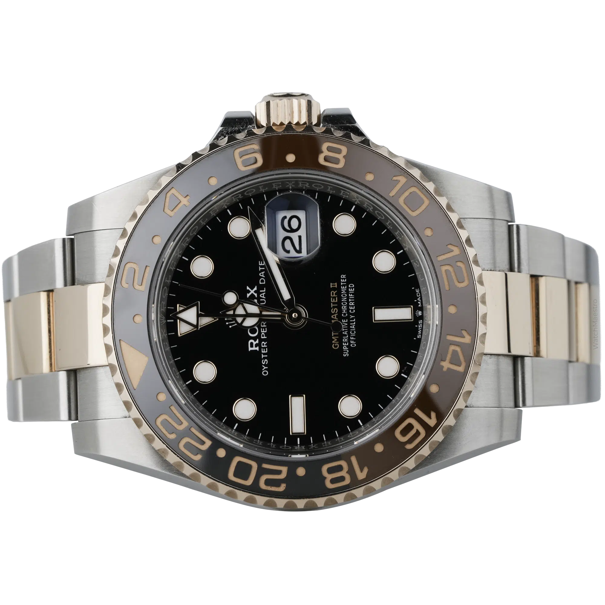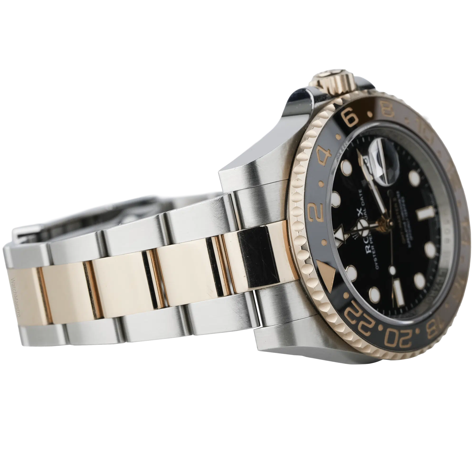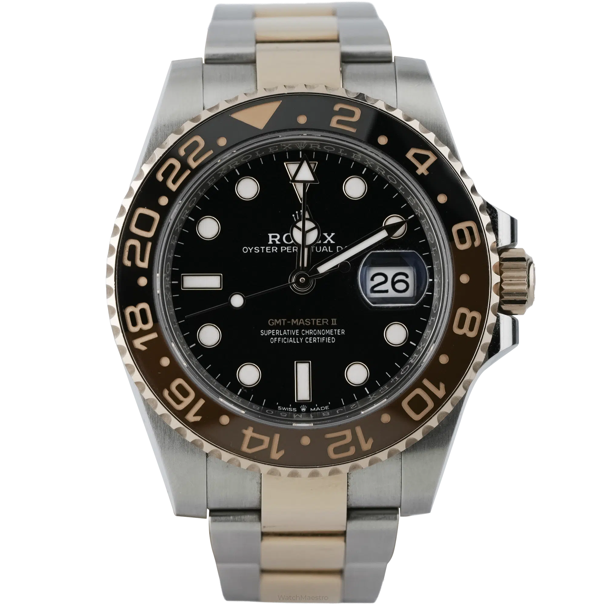 This is the iconic Rolex GMT-Master II in its Brown & Black colorway. The 40mm Black Dial sits on a stainless steel case, which further sits on a two-tone Oyster bracelet crafted out of Rose Gold and Stainless Steel. Popularly known as the Root Beer, this watch was originally purchased in 2023 & it comes complete with box and papers. The watch is pre-owned yet flaunts an amazing condition.