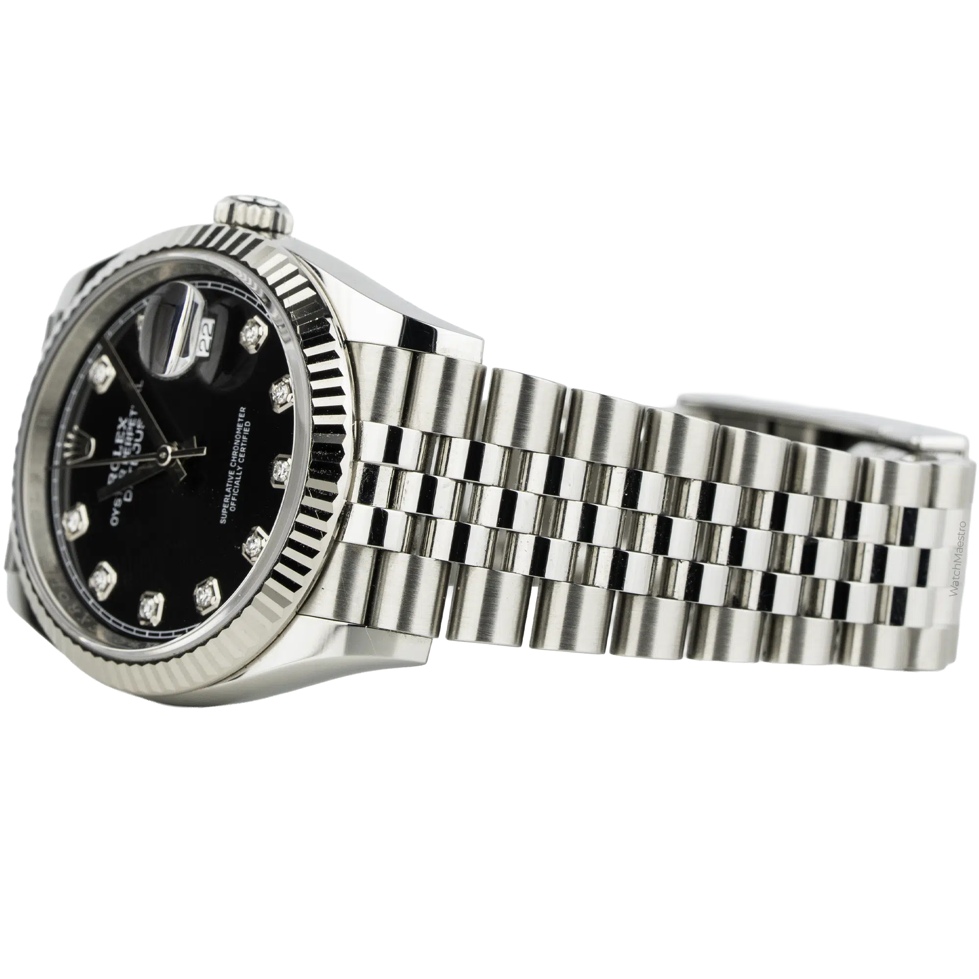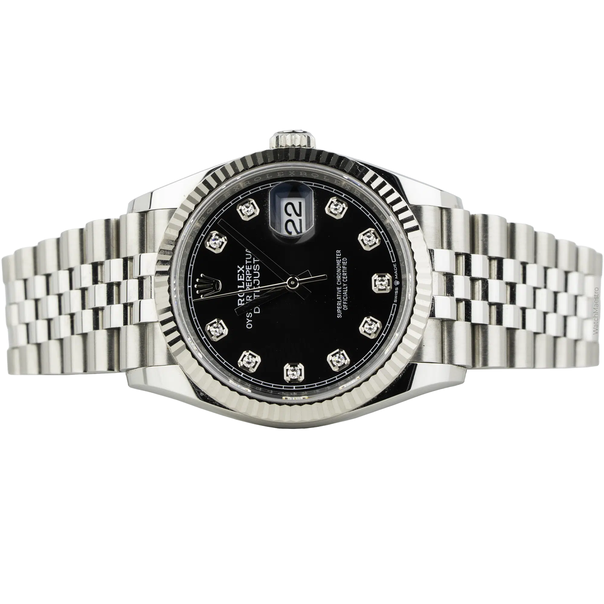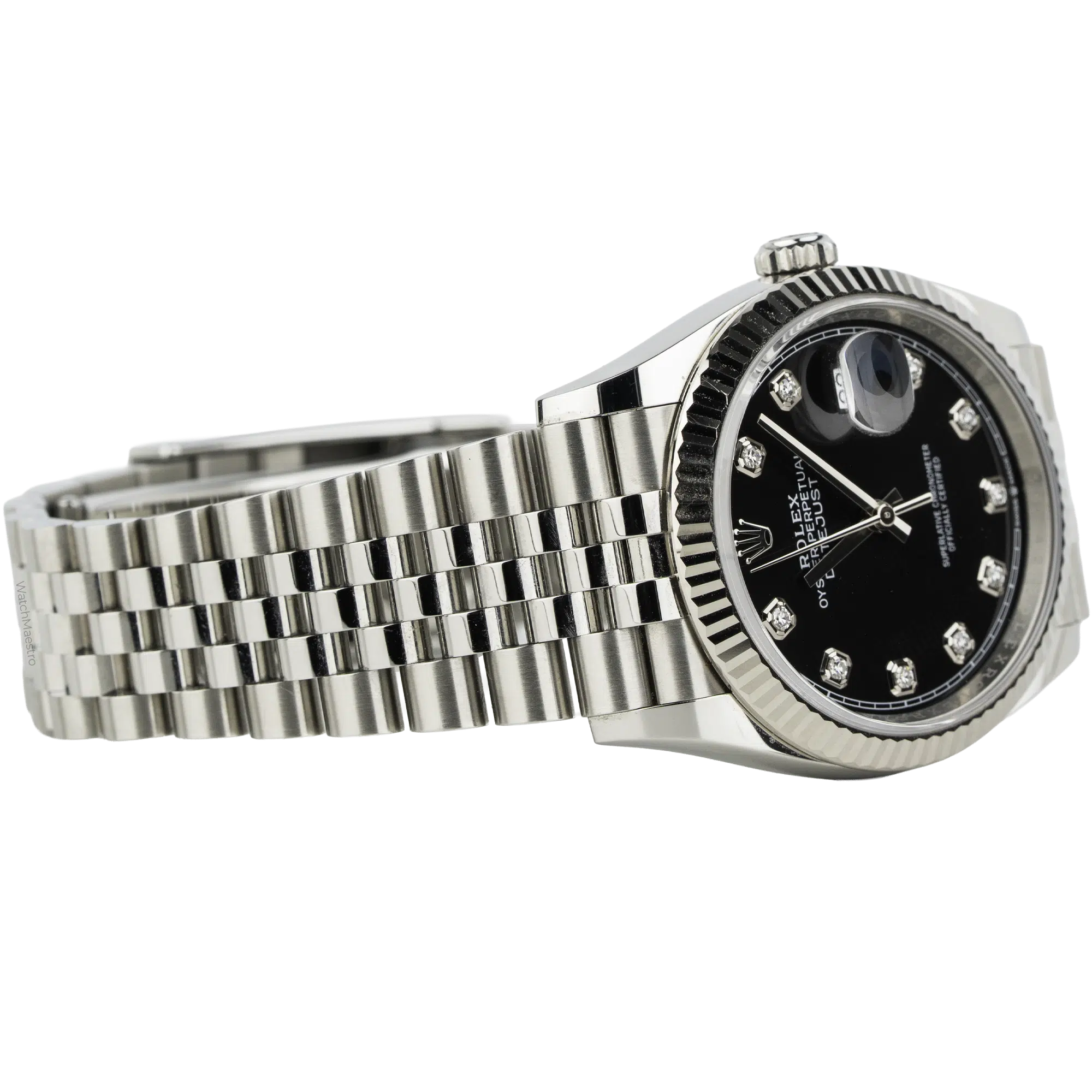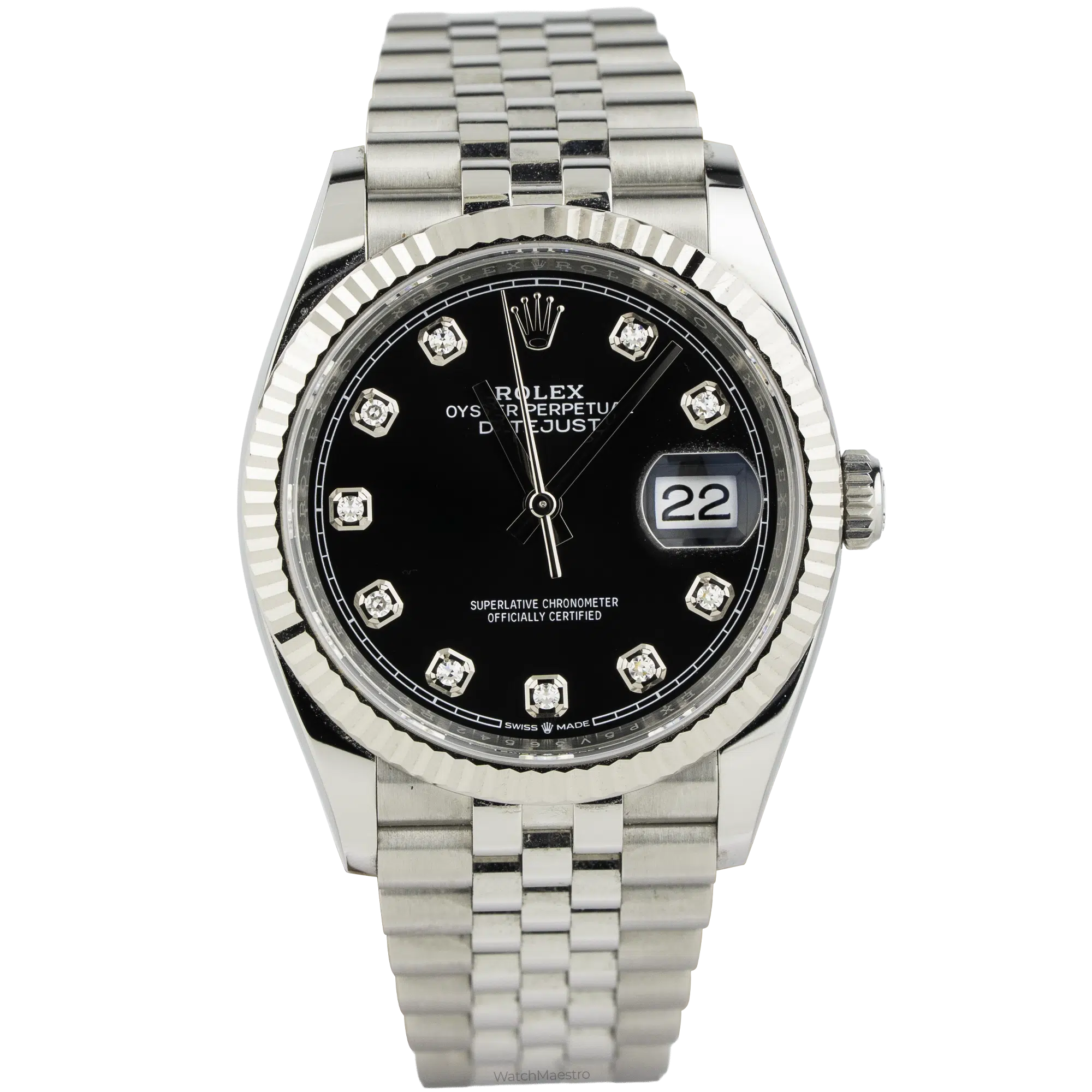 Keep it classy while also turning heads with this stand-out Rolex Datejust 36mm. Featuring a black dial with diamond-set hour markers, this one will definitely start some interesting conversations. With the combination of a Fluted Bezel and a Jubilee Bracelet, this watch definitely stands out. Purchased in 2023, the watch comes complete with box and papers. Even though it is classed as a pre-owned watch, this watch is in an immaculate shape.