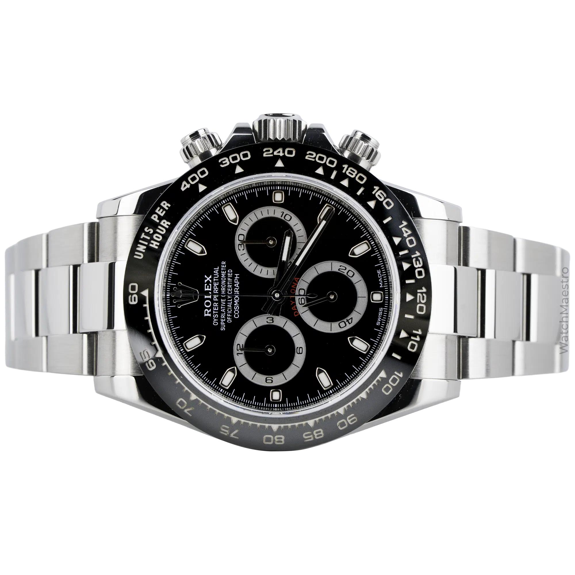 Introducing the legendary Rolex Daytona featuring a 40mm Black Dial. The Ceramic Bezel, known for its durability and resistance to scratching, frames the dial with a sporty yet refined touch. Encased in Stainless Steel, the Daytona boasts durability and understated luxury. The Oyster Bracelet ensures a seamless fit for every occasion. Acquired in 2021, this brand-new Rolex Daytona arrives with its original box and papers.
