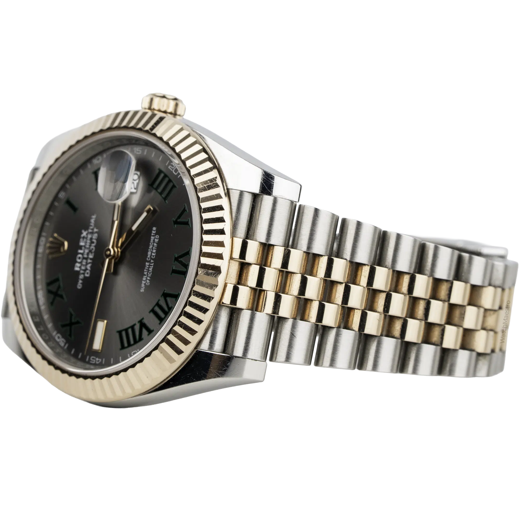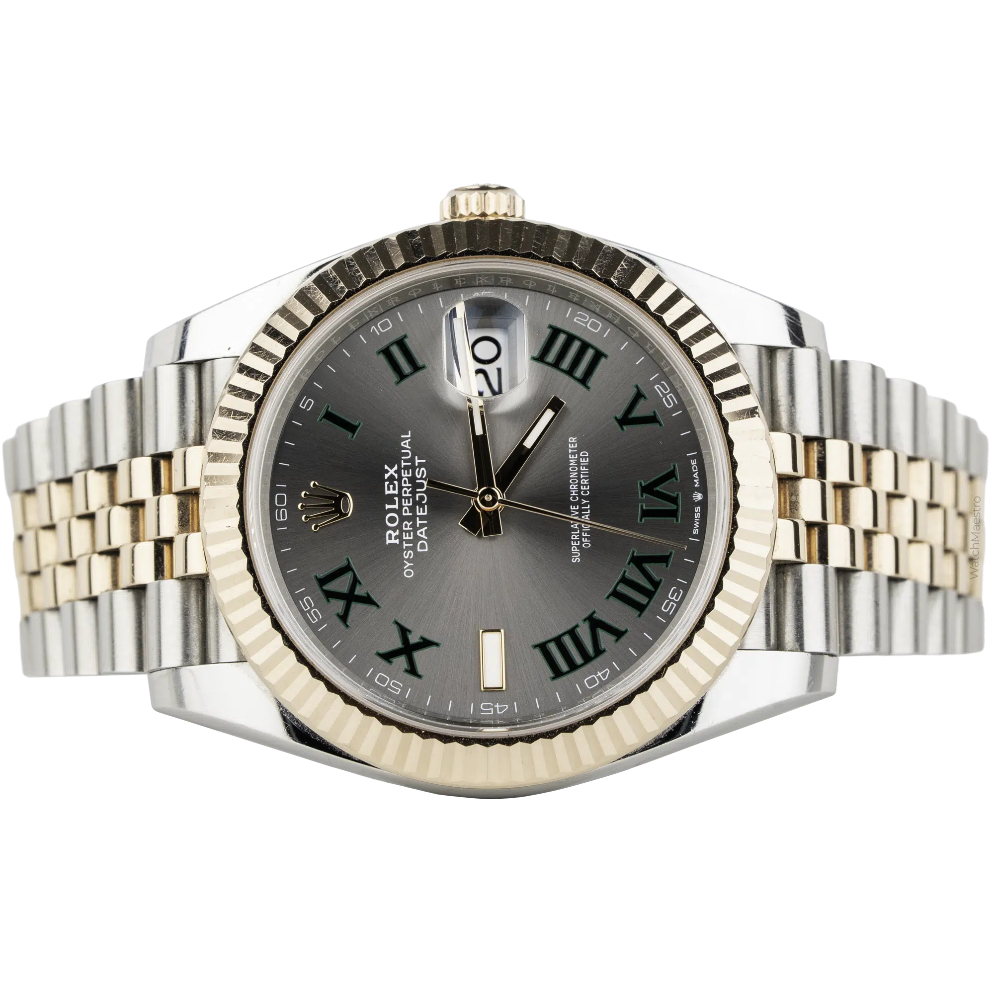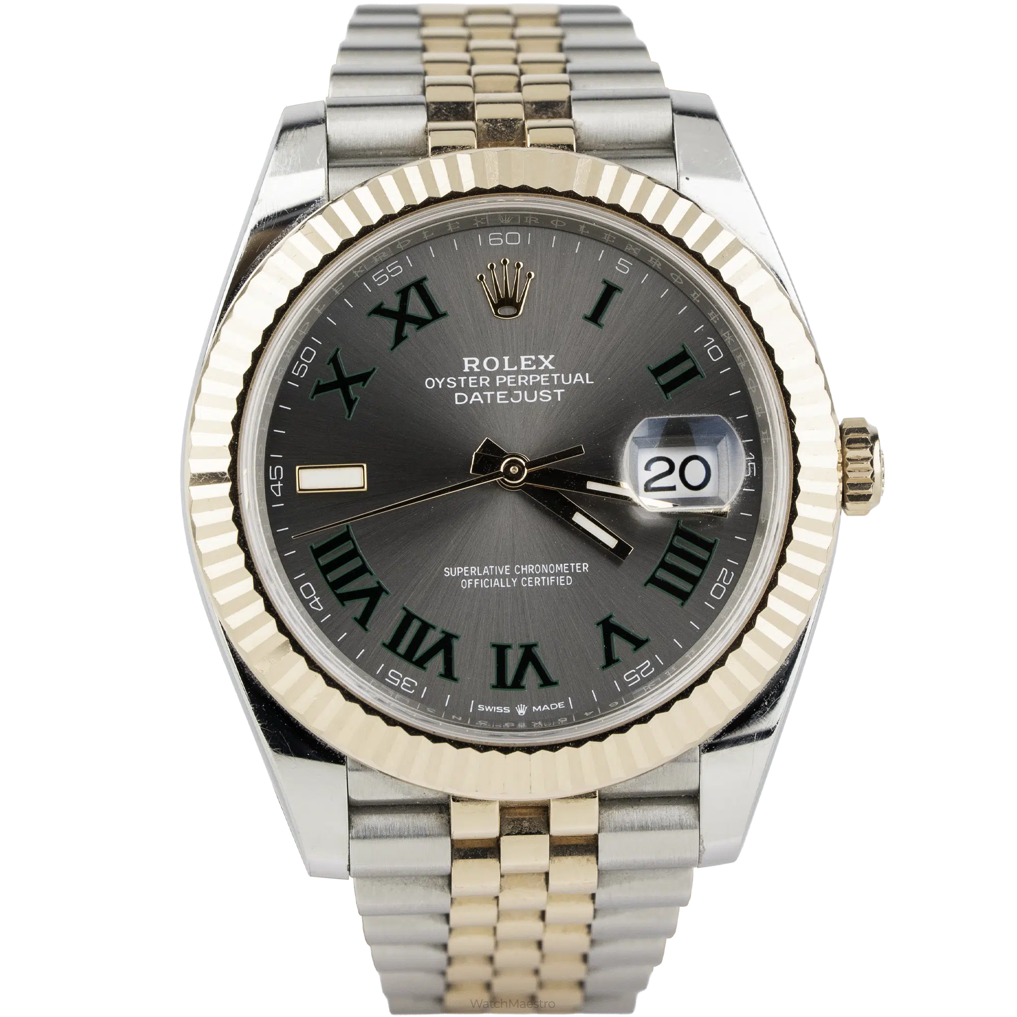 If you love tennis, you will love this one! This Rolex Wimbledon features a 41mm grey dial with Roman numerals, popularly known as the Wimbledon dial because of the green accents. Crafted in Everose Gold, this Datejust features a Rose Gold Fluted Bezel and a Two-tone Rose Gold and Steel Jubilee Bracelet. Purchased in 2024, this Rolex Datejust is still in a like-new condition and comes complete with its original box and papers, sheltered under the Rolex warranty.