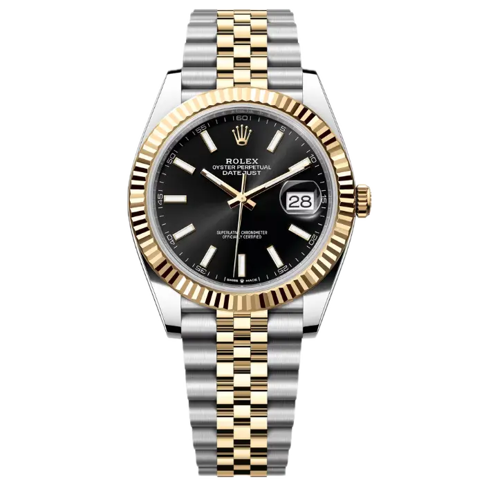 Introducing the Rolex Datejust reference 126333 featuring a 41mm Black Dial. It flaunts a Two Tone Yellow Gold and Steel Jubilee bracelet that sits very comfortably on the wrist. The watch also boasts an 18ct Yellow Gold Fluted Bezel that helps it grab attention. Its 41mm profile strikes a balance between presence and understated elegance, making it an ideal choice for special occasions. Acquired in 2018, the watch is still in a relatively good shape, and it comes complete with a box and papers.