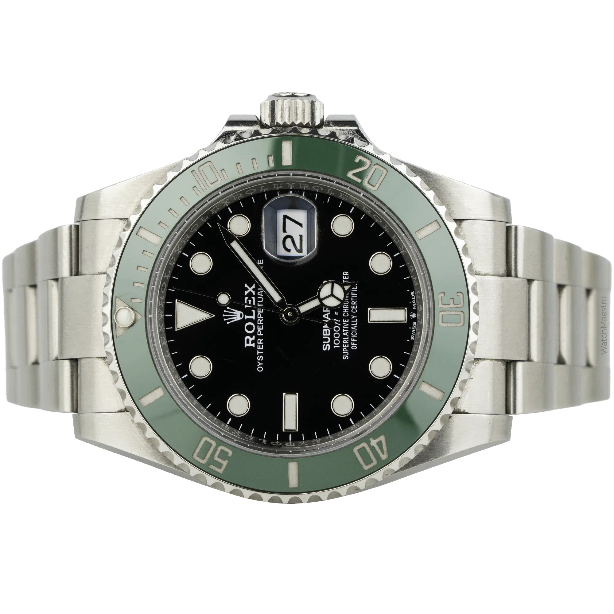 If a Black Dial Submariner goes a bit too understated for you, we now bring you the option to pick up the ever-so-popular Submariner Starbucks. Presented with a vibrant Green Cerachrom Bezel, this is a Stainless Steel Submariner that does stand out. With the 41mm Black dial, it offers a great contrast and the steel material makes this watch a perfect daily wearer. This pre-owned Submariner is from 2021 and does not come with the box and papers. However, for that reason, you have the chance to get this piece at a steal deal. Whether you’re exploring the depths of the ocean or navigating the urban jungle, the Rolex Submariner is a symbol of endurance and style that transcends time and trends.