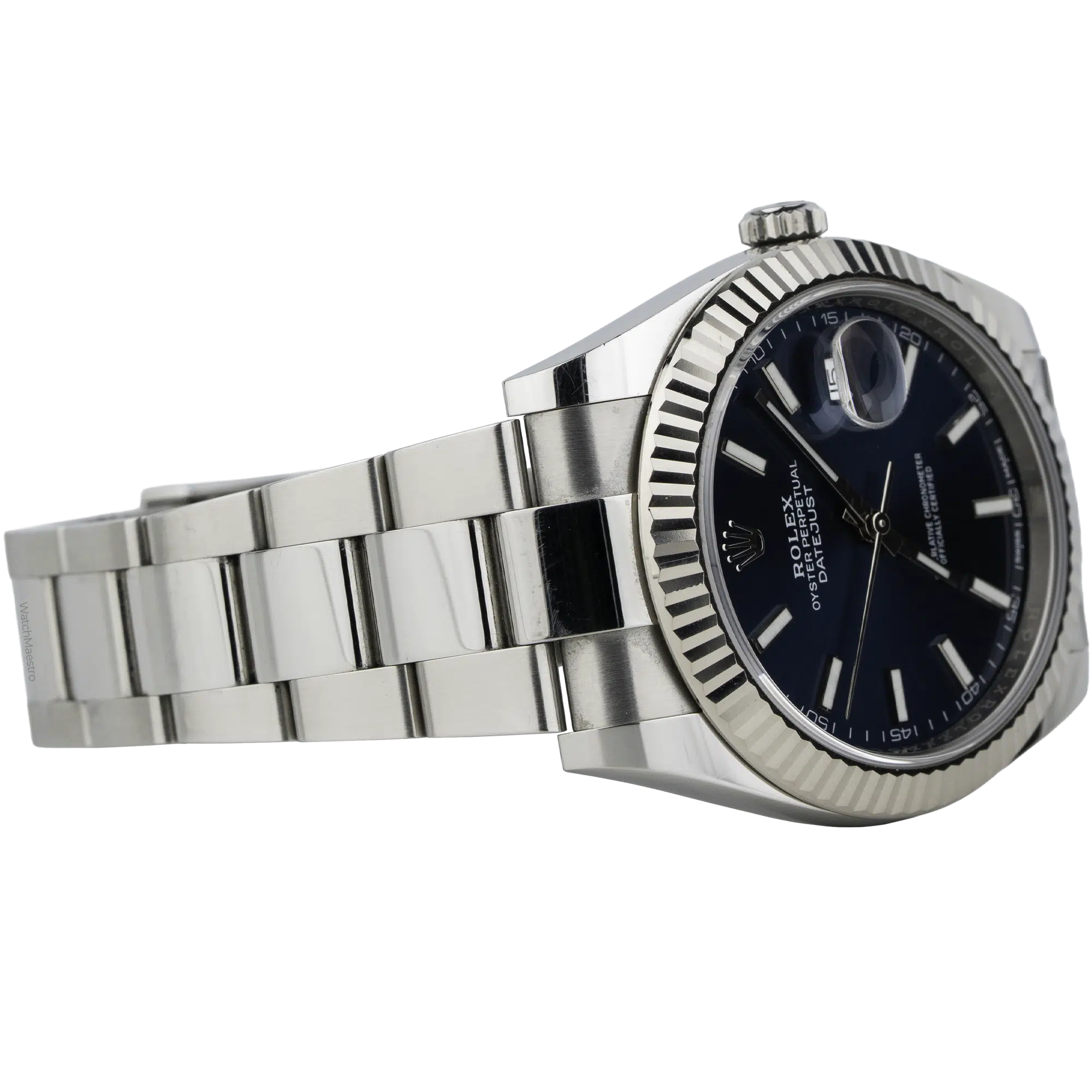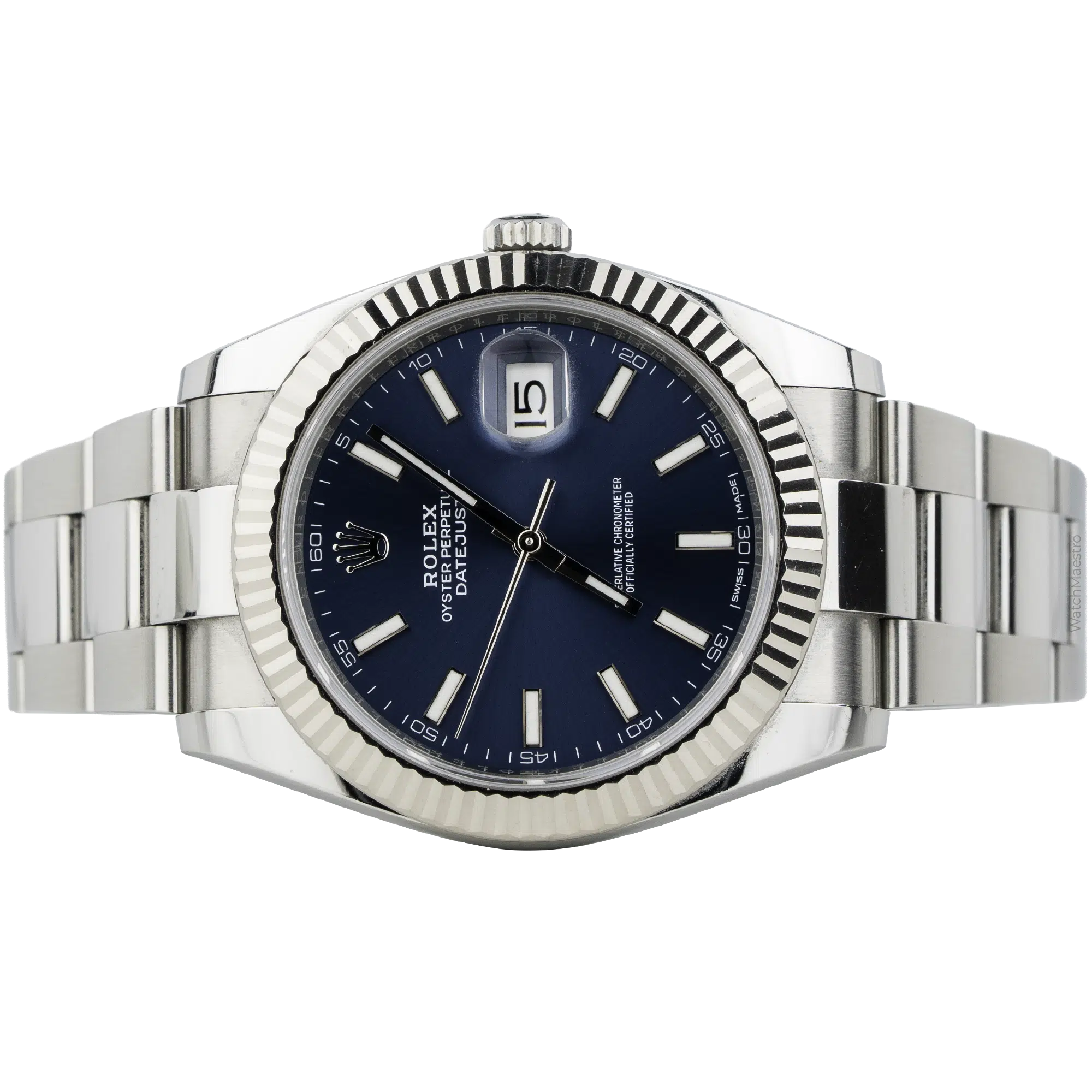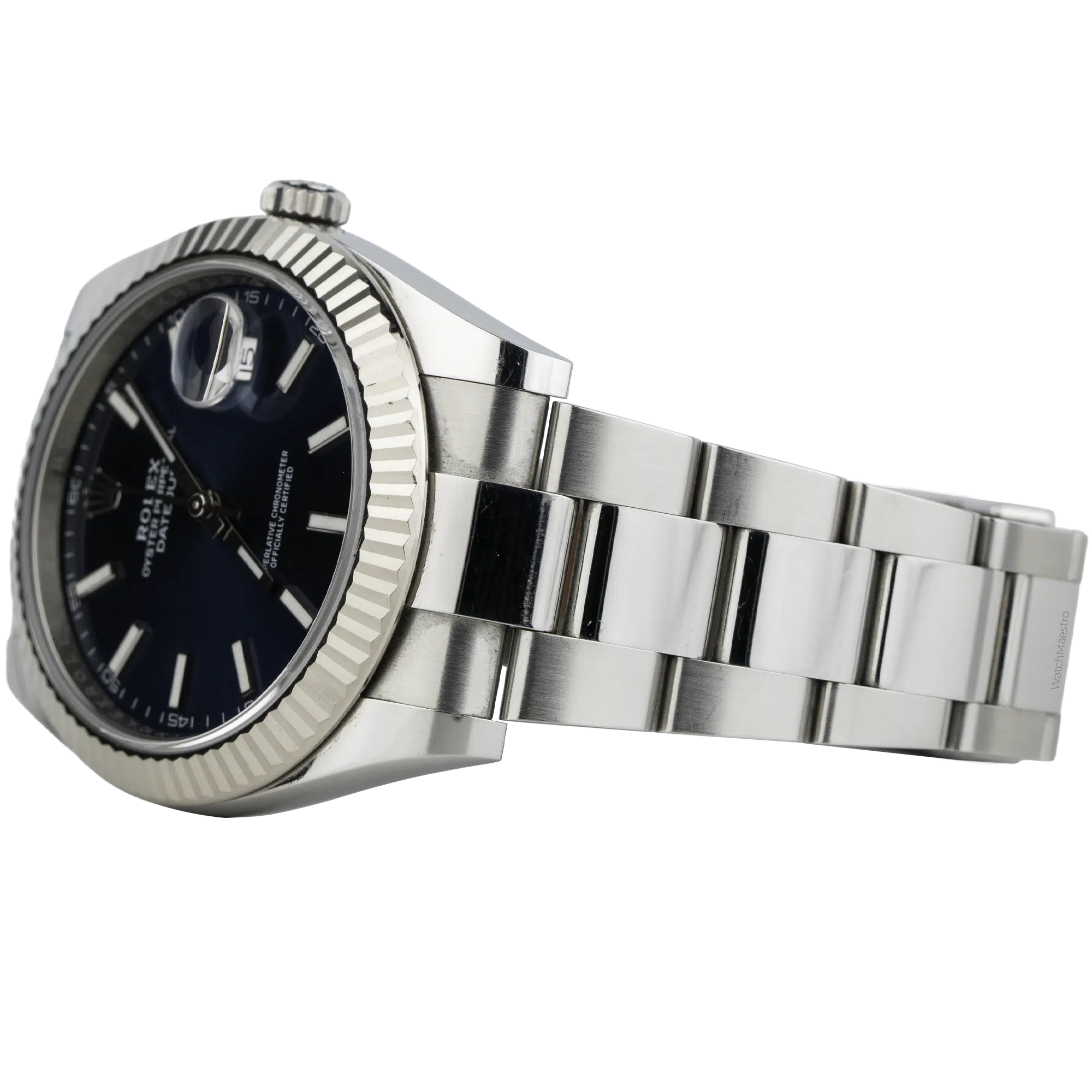 When you wear this Datejust, it feels solid and well-balanced on the wrist. The 41mm size has a strong presence, but the flat Oyster bracelet makes it comfortable for the skin. In addition, the blue dial changes slightly under different lighting conditions, making the watch interesting and beautiful to look at. The white gold bezel adds a subtle shine without too much flashiness. Rolex Datejust 41 is suitable for both office days and casual weekends.