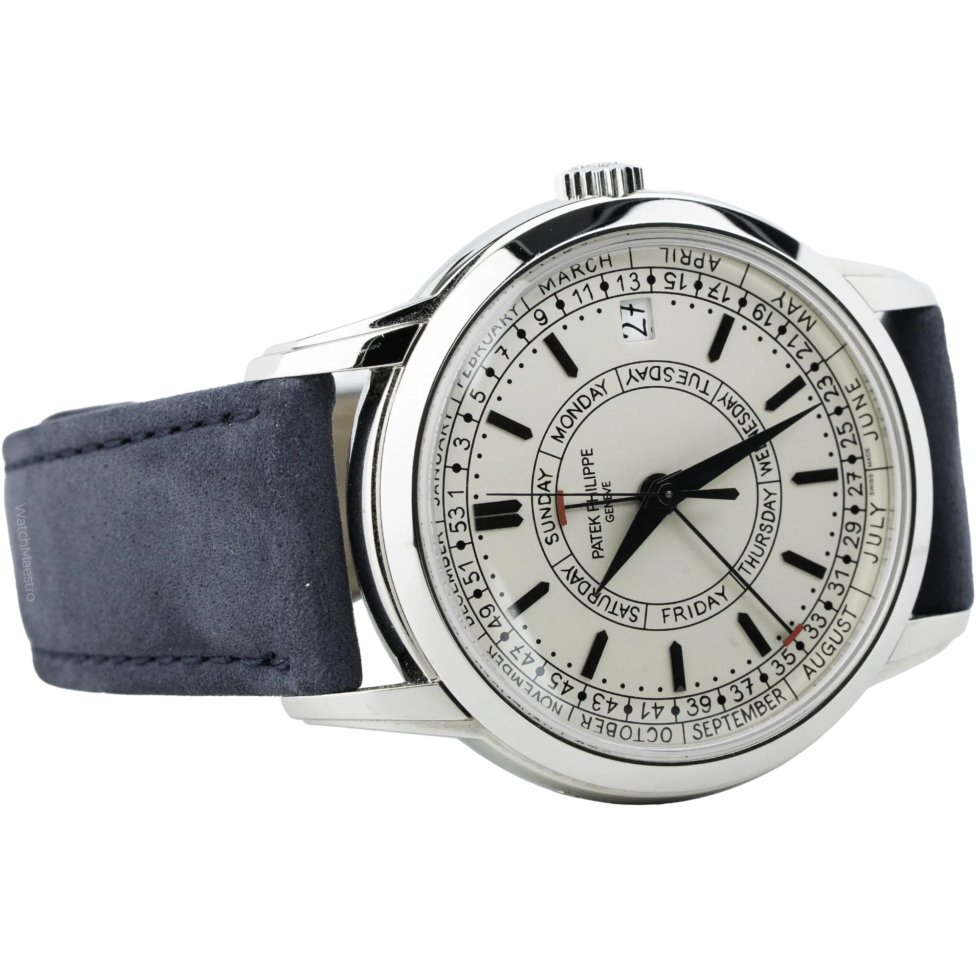 The Patek Philippe watch looks excellent with a navy business suit, but you can also pair it with a casual outfit like a fine cashmere sweater. You should wear it to office meetings or weekend dinners. The reference 5212A is a very good choice for investment. Collectors always demand Patek Philippe watches because the factory production is low. Besides, you will get this watch with its original box and papers, so its financial value will likely increase over time. A one-year limited warranty from WatchMaestro will also give you peace of mind.