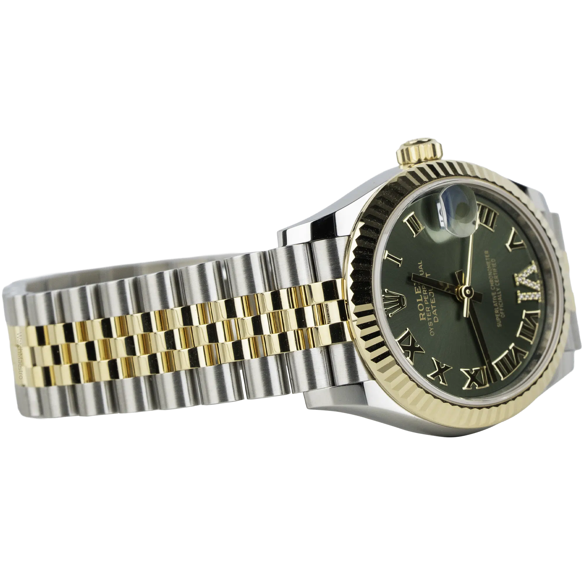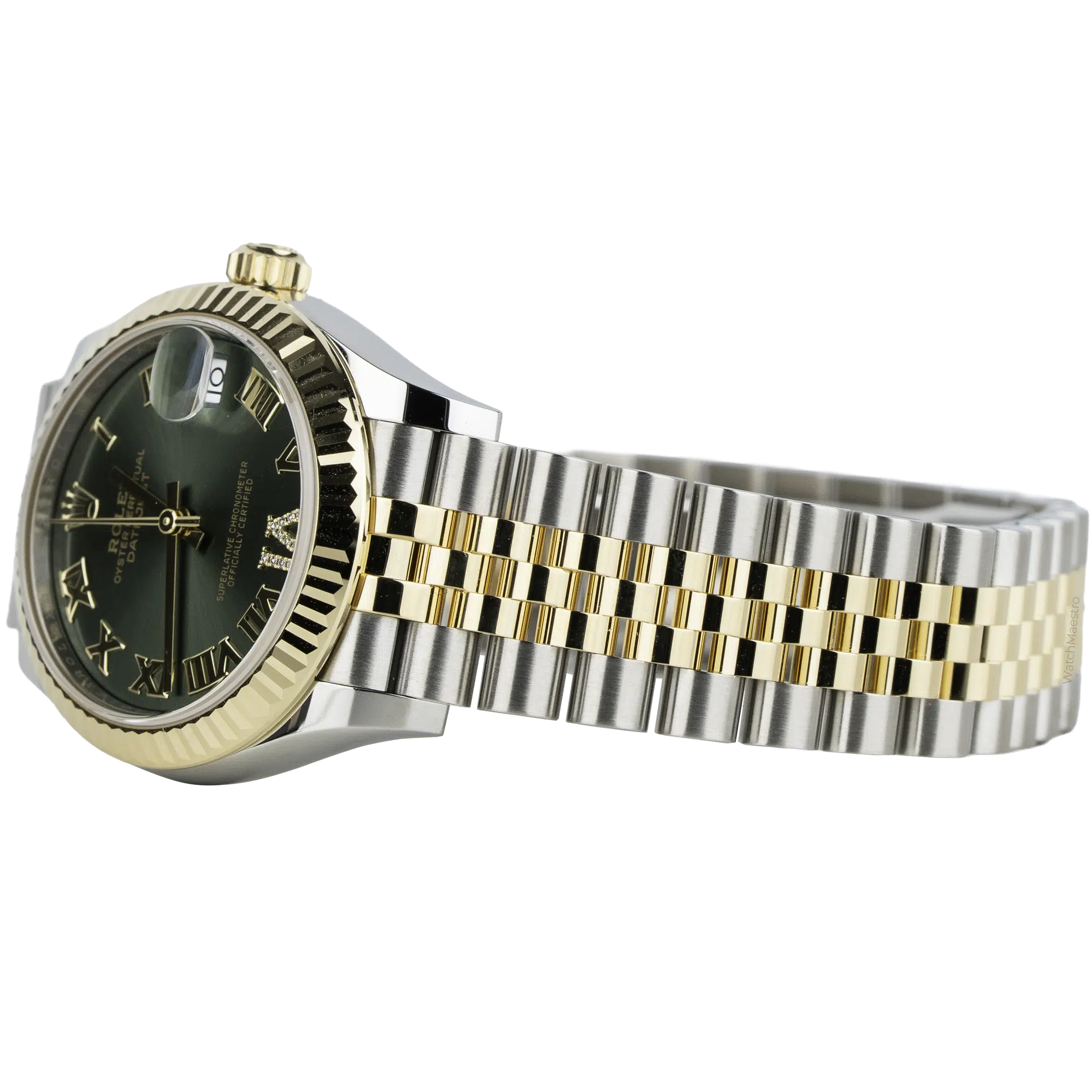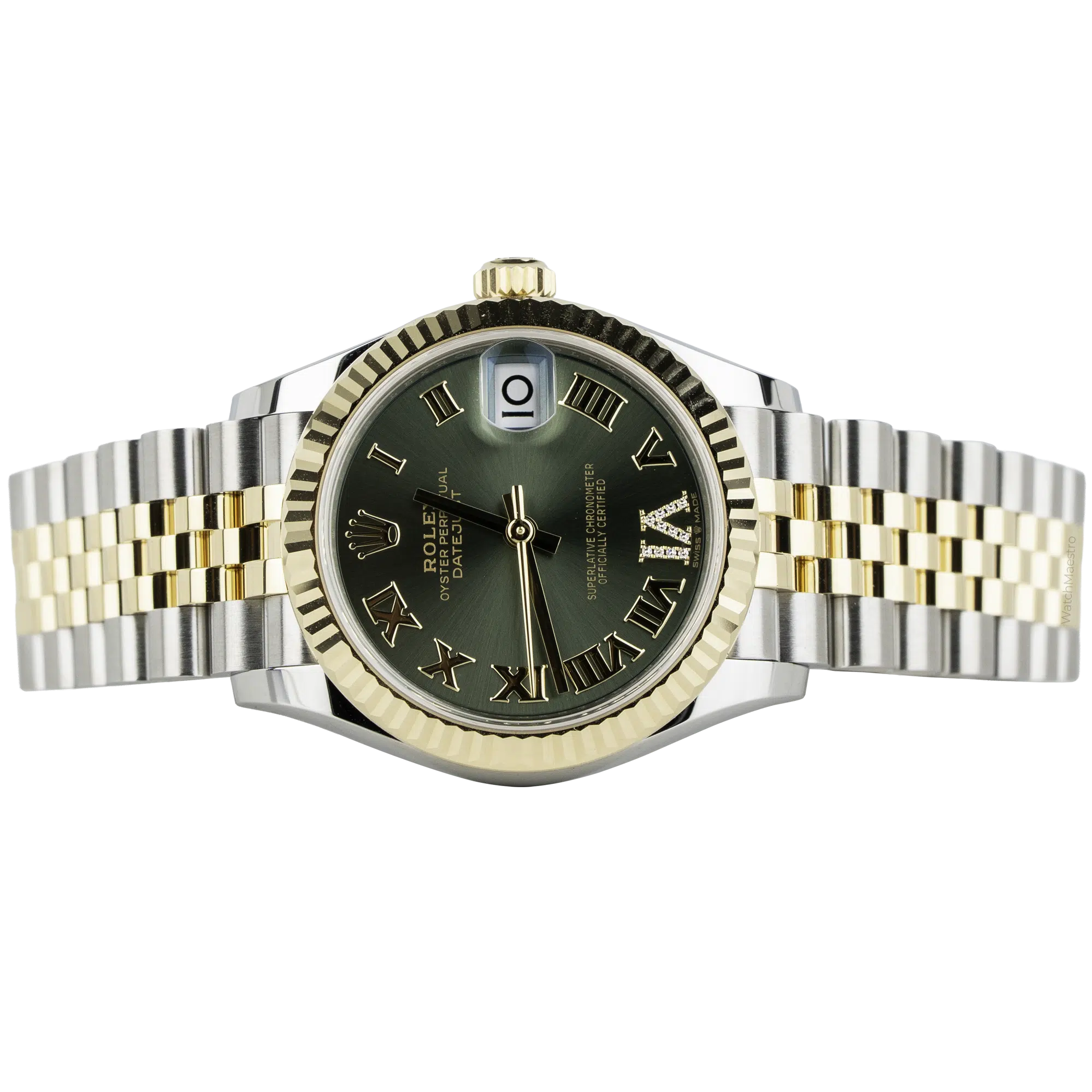 Presenting the Rolex Datejust 31mm in brand-new condition. It flaunts a mesmerizing Green Roman Dial encrusted with diamonds on the VI marker. The sleek hands glide gracefully across the face, while the date window at 3 o’clock ensures both functionality and refinement. Encased in stainless steel, the 31mm watch is paired with a Yellow Gold Fluted Bezel. The striking Two-Tone Jubilee Bracelet, crafted from Yellow Gold and Stainless Steel, perfectly balances the look and appeal of the watch. Acquired fresh in 2026, this Rolex Datejust comes complete with its original box and papers, reassuring you of its authenticity.