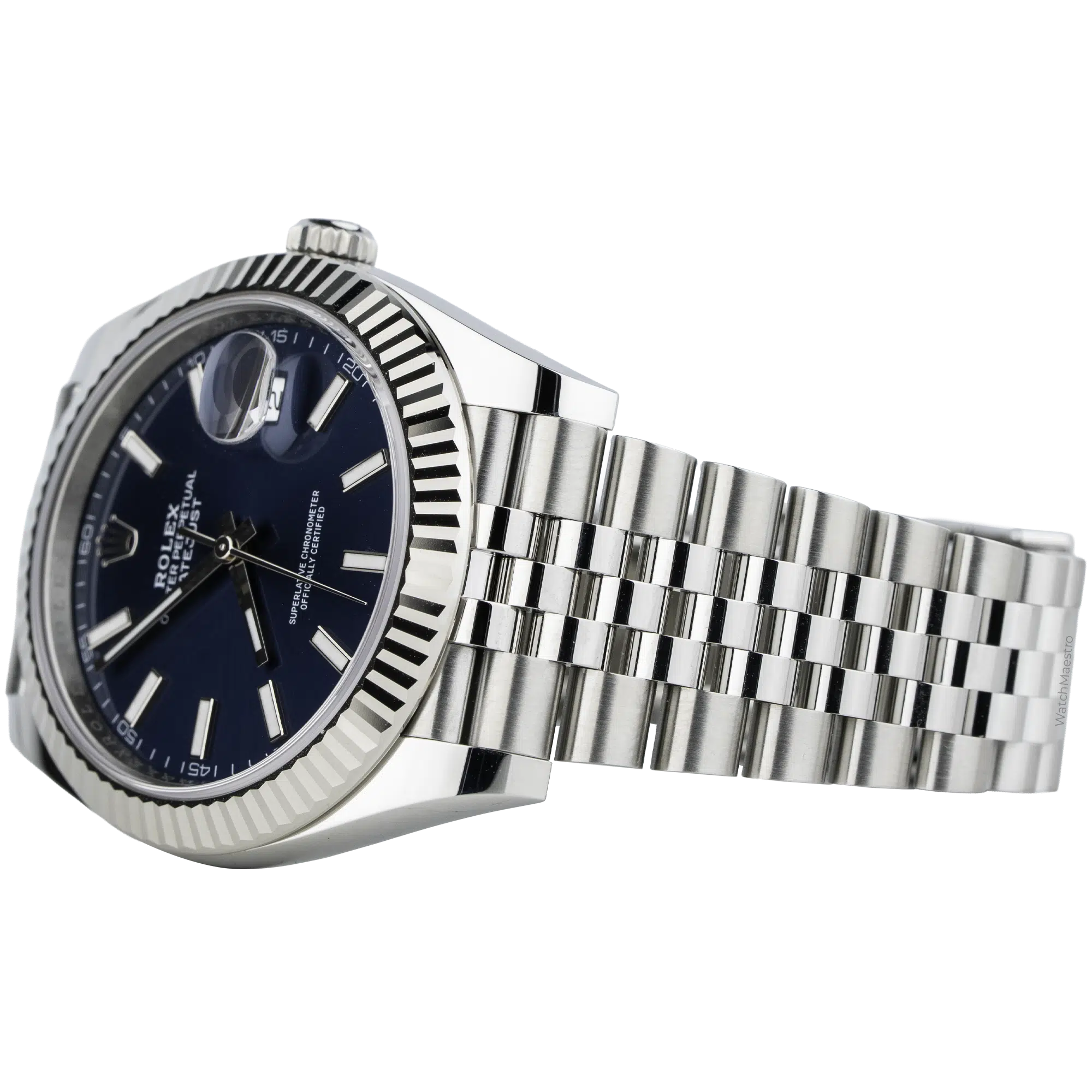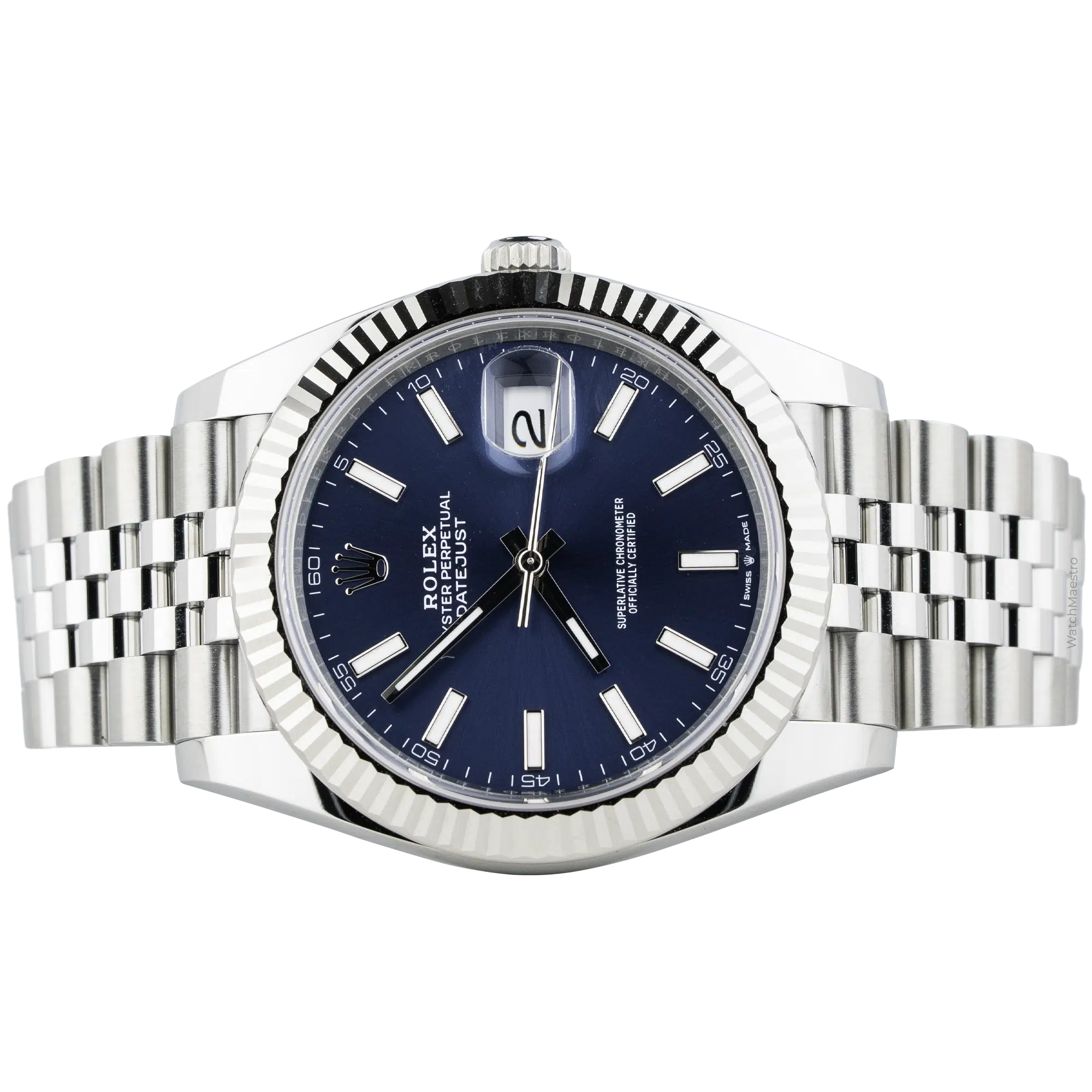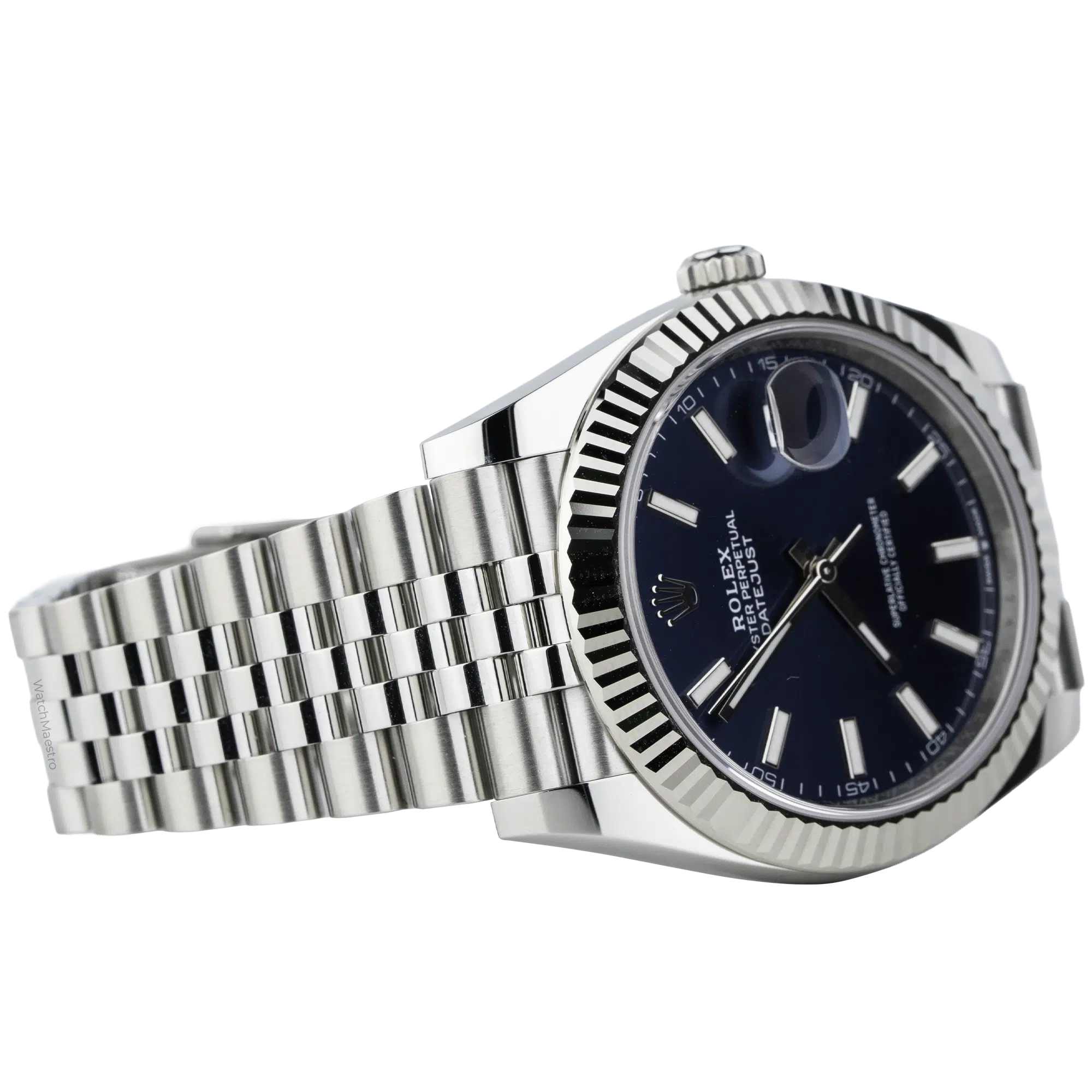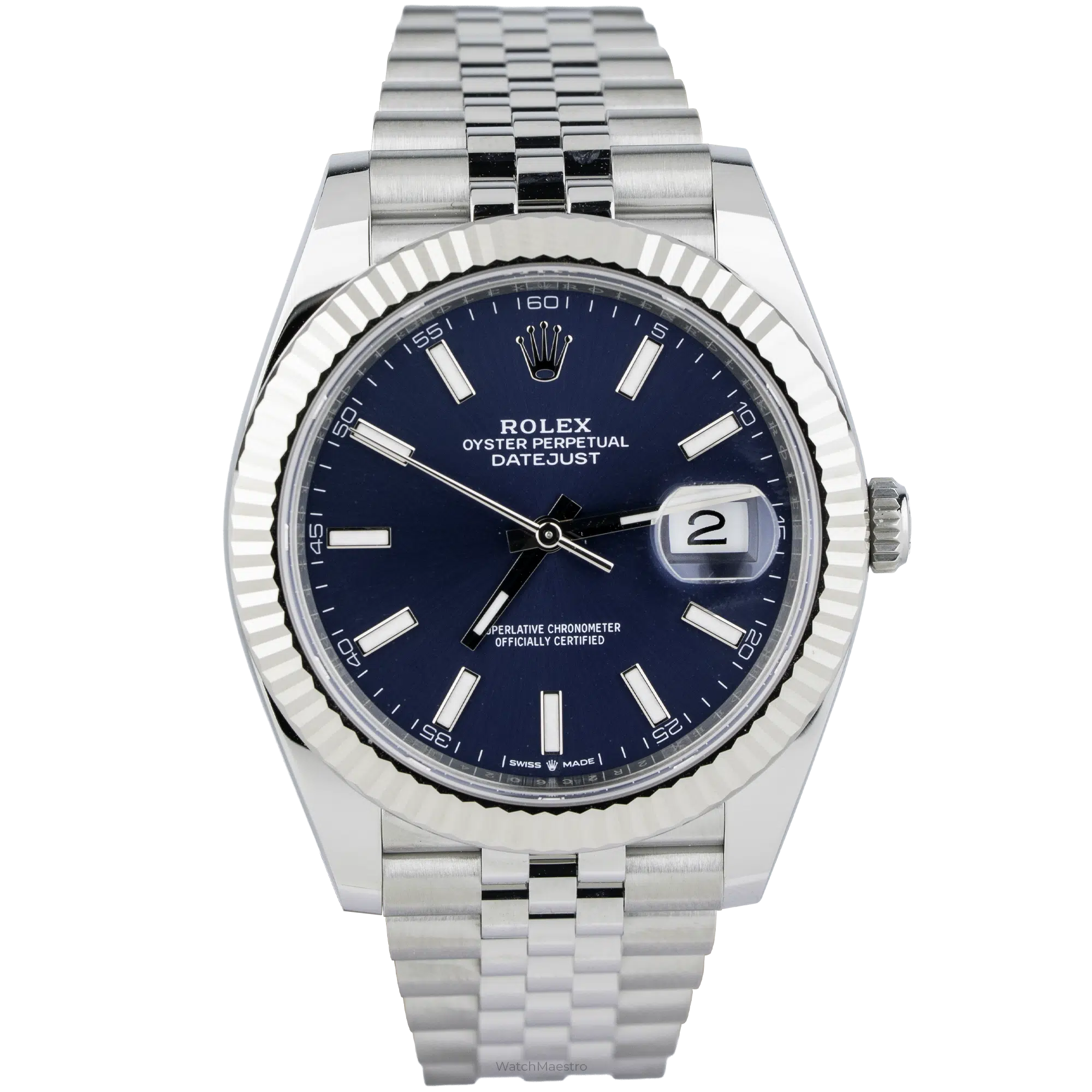 Embrace the ever-so-popular Rolex Datejust 41 in a stunning Blue Dial. The iconic fluted bezel, crafted from 18k white gold, adds a touch of undeniable luxury and sets this timepiece apart from the ordinary. The comfortable Jubilee Bracelet completes the look with its five-link construction. This 2025 brand-new timepiece comes complete with its original box and papers. Whether you’re a seasoned watch enthusiast or simply appreciate quality craftsmanship, the Datejust 41 is sure to become a cherished companion for a lifetime.