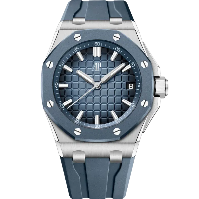Inside this one beats AP’s in-house automatic chronograph movement, delivering modern performance and reliability. For those who want the unmistakable Royal Oak Offshore look without going full precious metal or ceramic, this blue-dial 43mm strikes a confident middle ground.