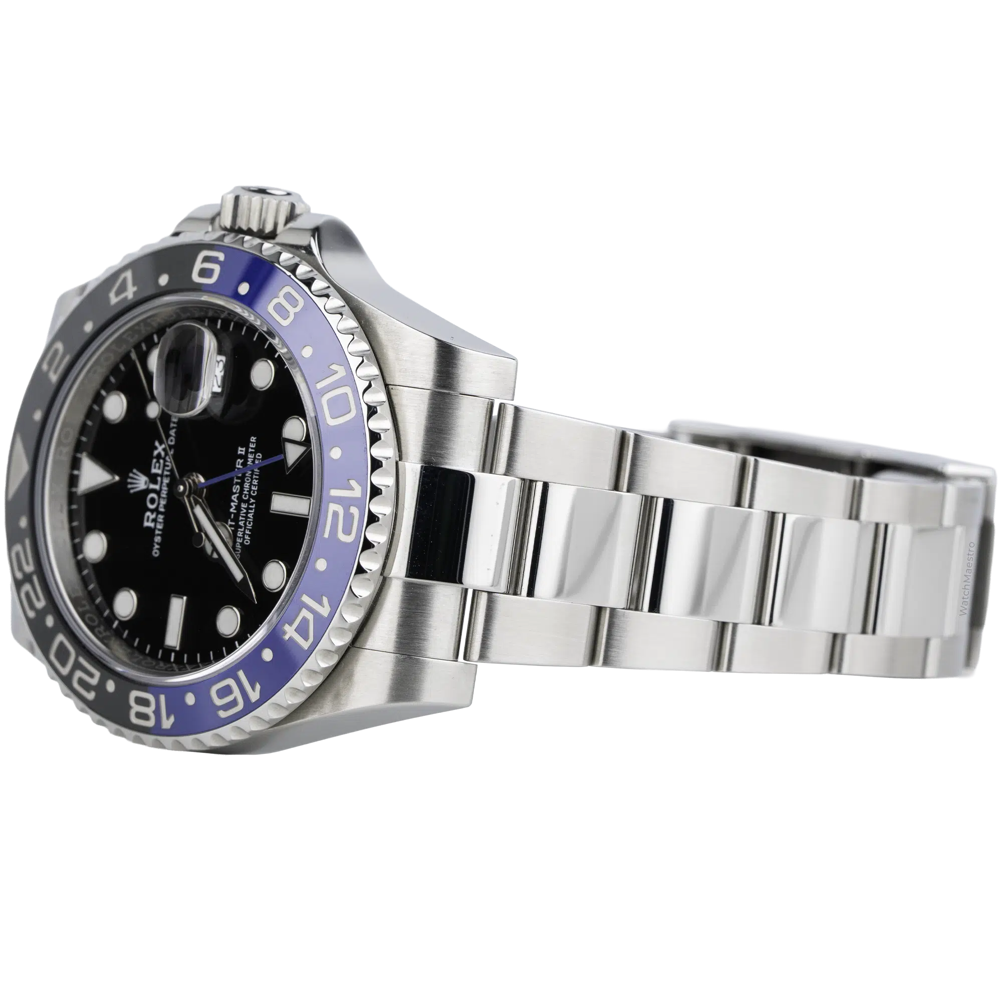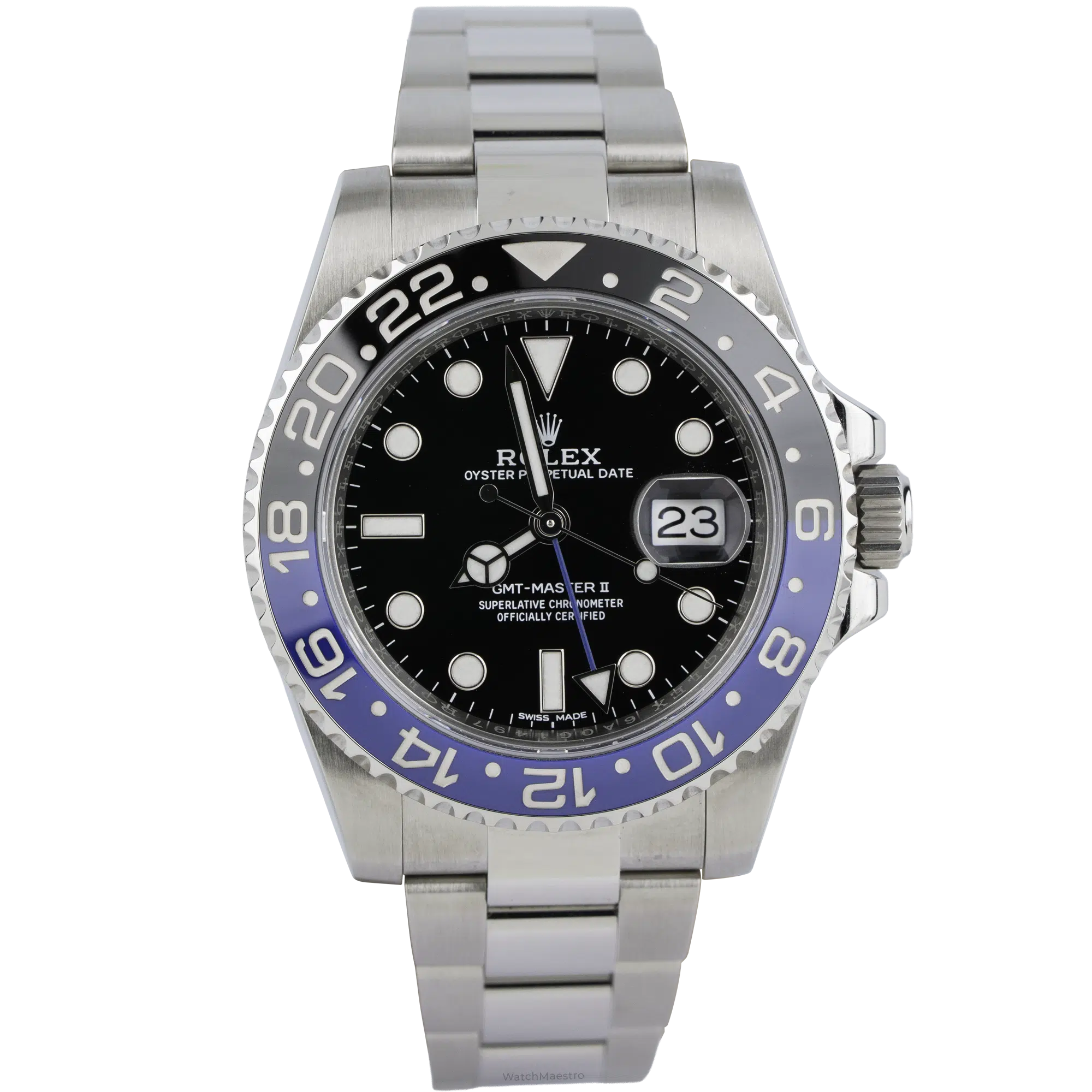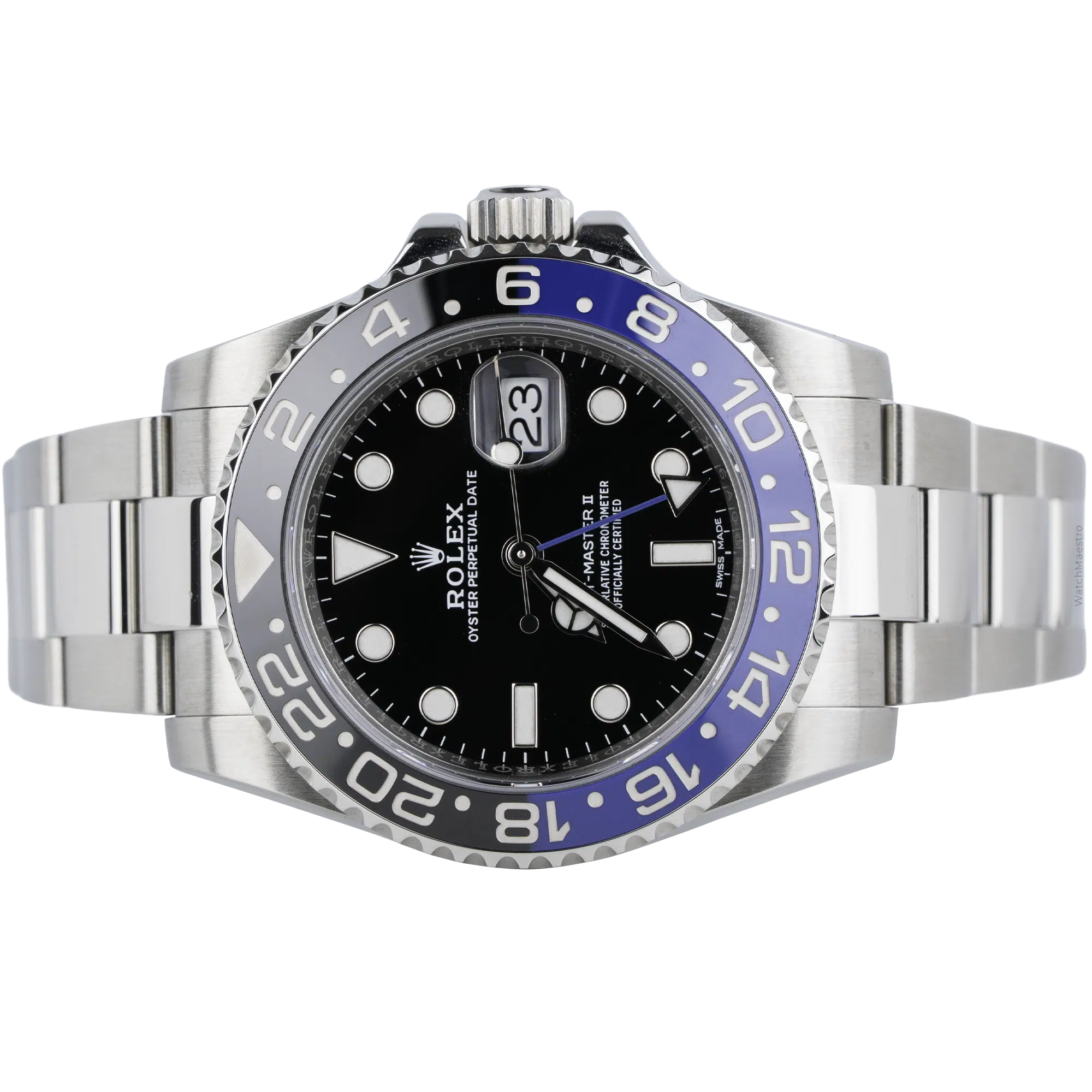 Rolex GMT Master II is one of the most desired Rolex models among collectors and enthusiasts. On top of that, the Batman bezel is a preferred choice for many. This Rolex 116710BLNR is powered by the caliber 3186 movement, which offers a power reserve of approximately 50 hours.